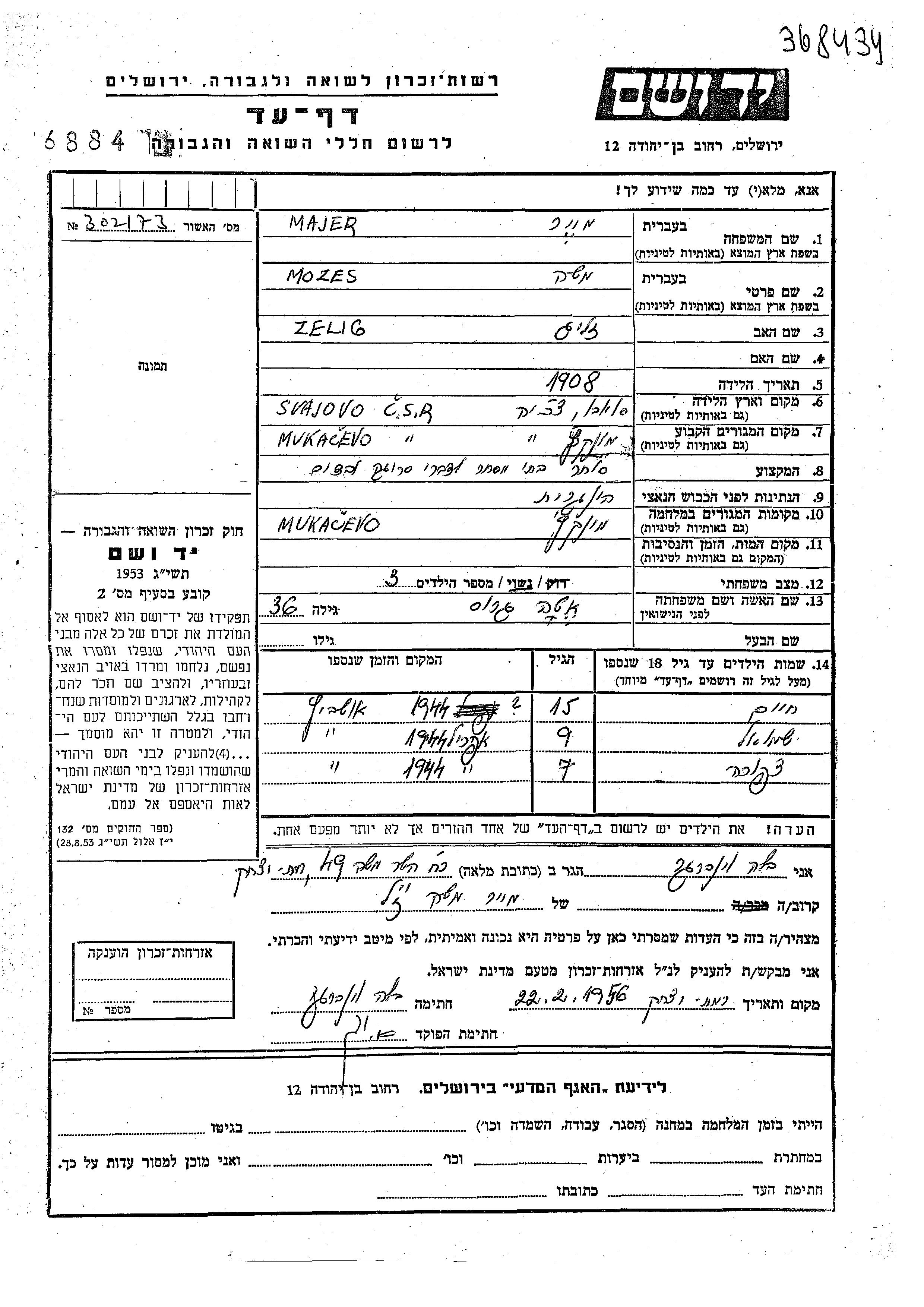 צפורה Majer נולדה למושזס ואטה לבית גרוס. היא היתה ילדה. לפני מלחמת העולם השניה התגוררה בMukacevo שבצ'כוסלובקיה. בזמן המלחמה היא היתה בMukacevo שבצ'כוסלובקיה. צפורה נרצחה בשואה.