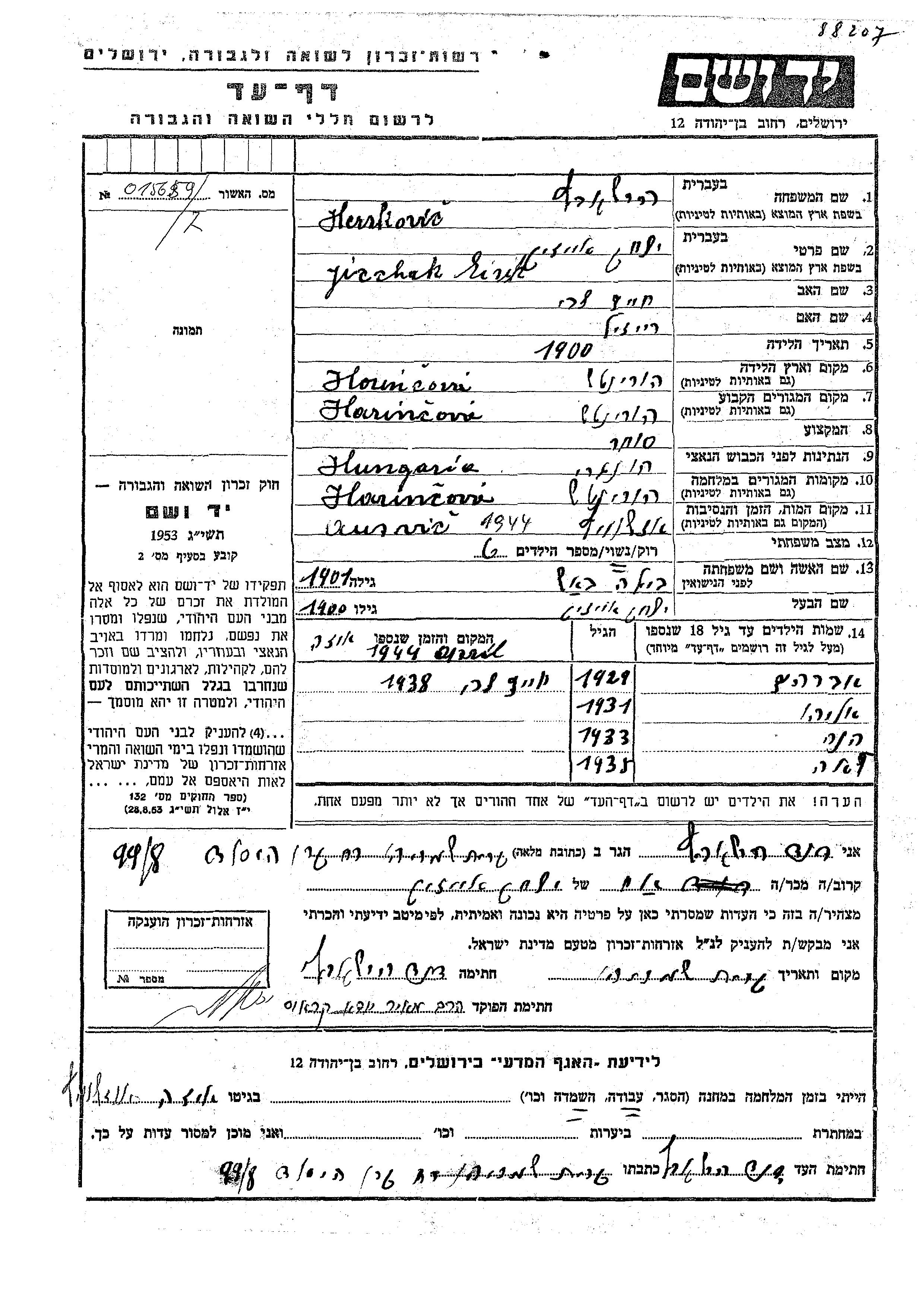 Herskovic אברהם Horincovo, צ'כוסלובקיה דף-עד
