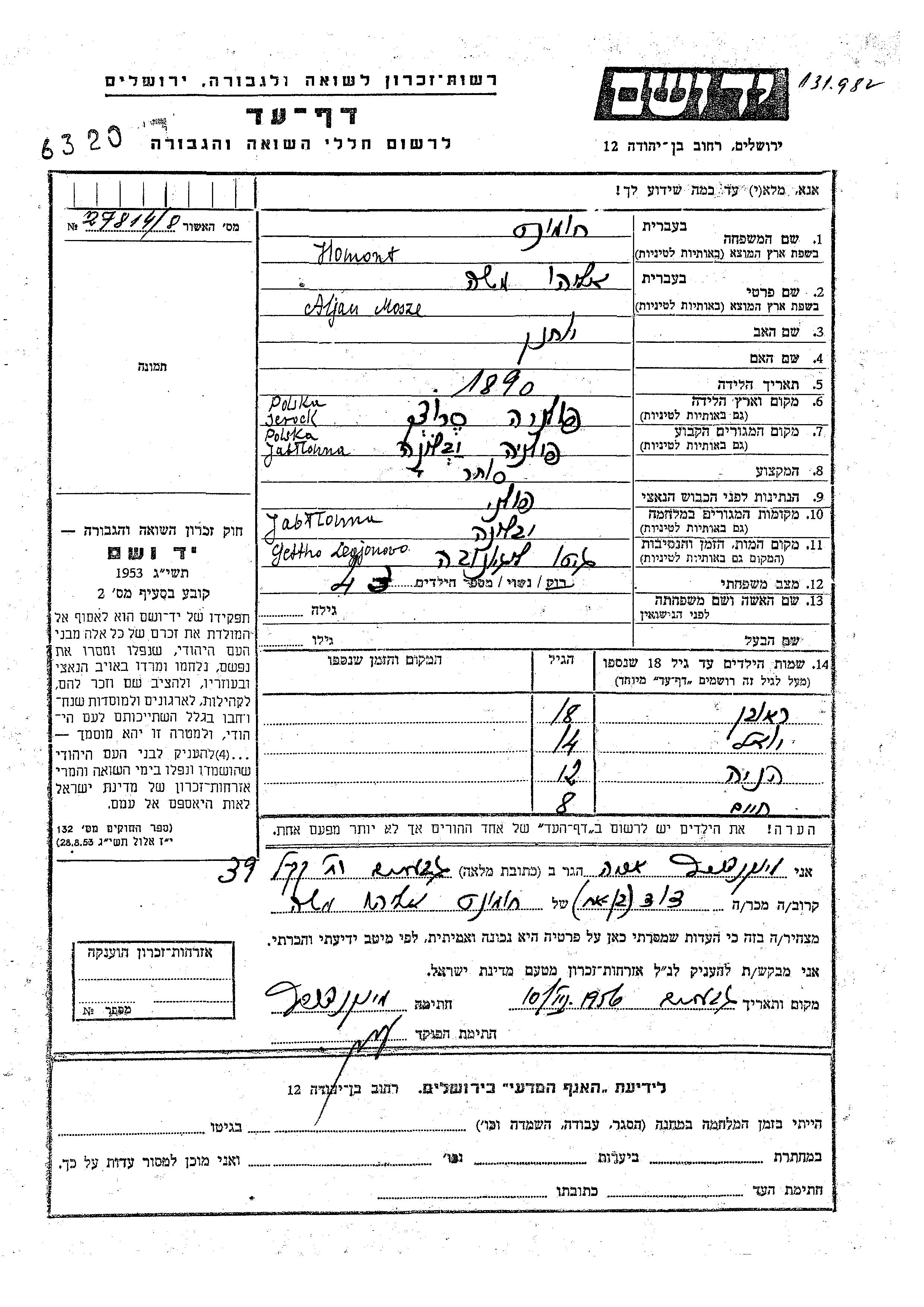 יד ושם - המפעל להנצחת השמות בדפי עד