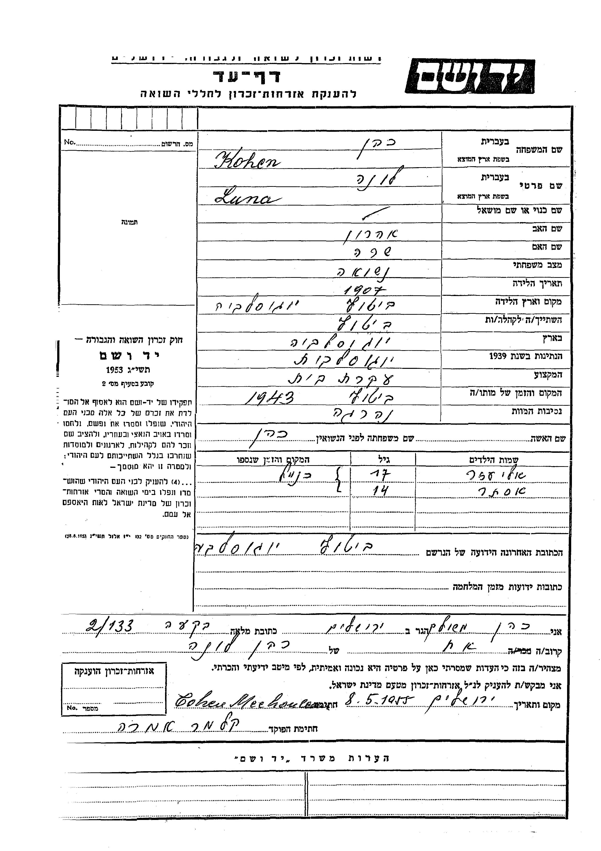 יד ושם - המפעל להנצחת השמות בדפי עד