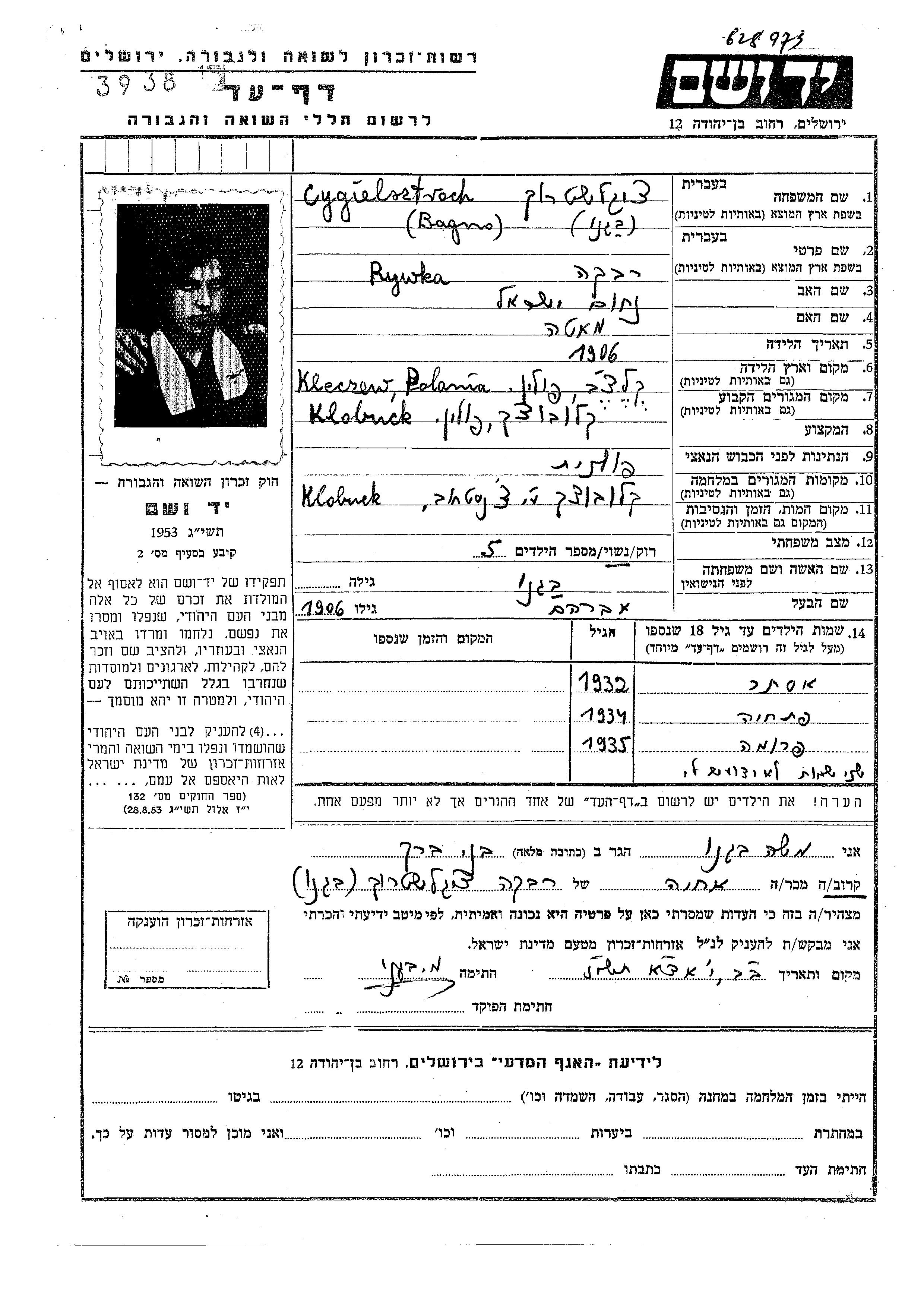 Cygielsztroch פרומה 1935 Klobuck, פולין דף-עד