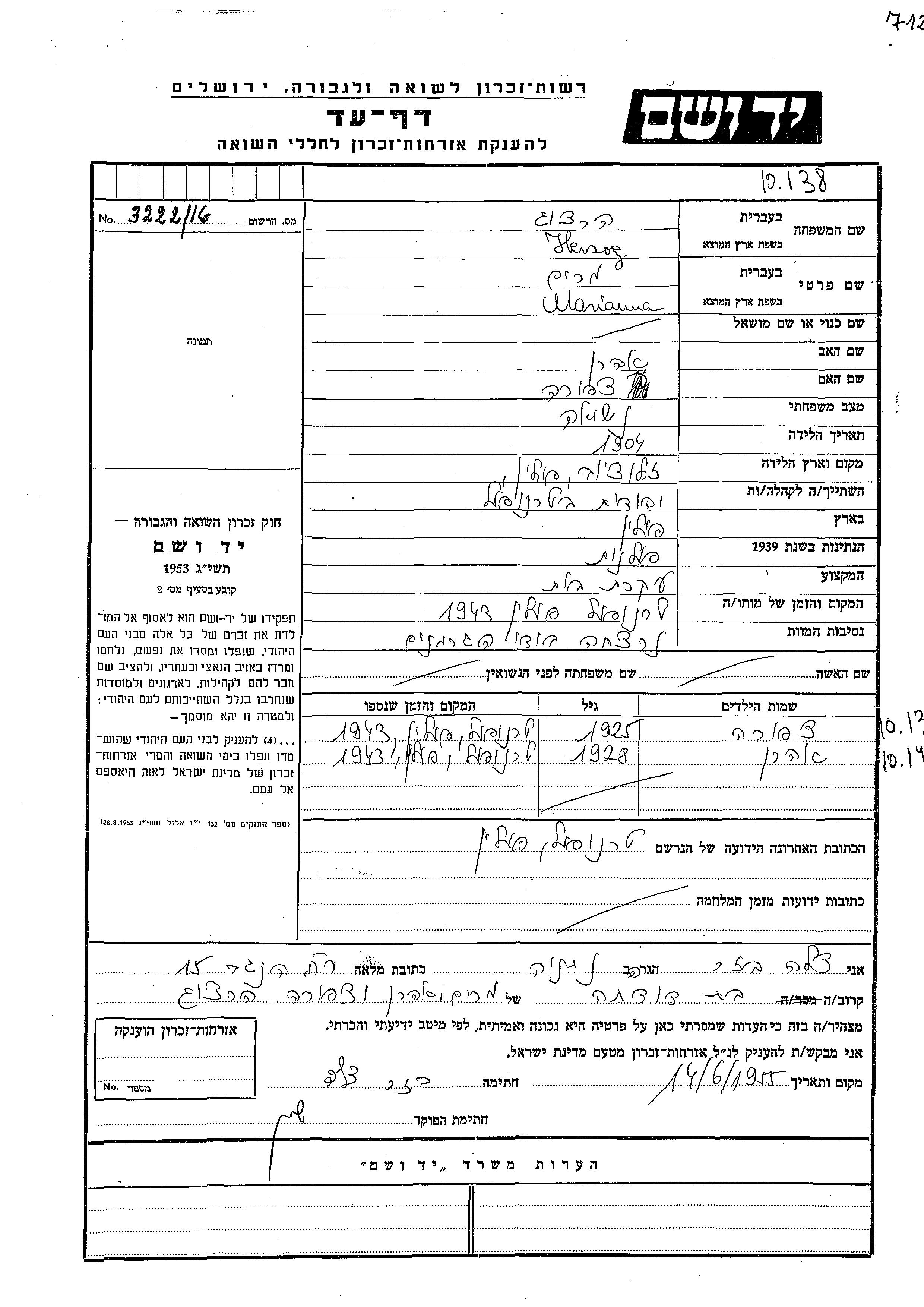 יד ושם - המפעל להנצחת השמות בדפי עד
