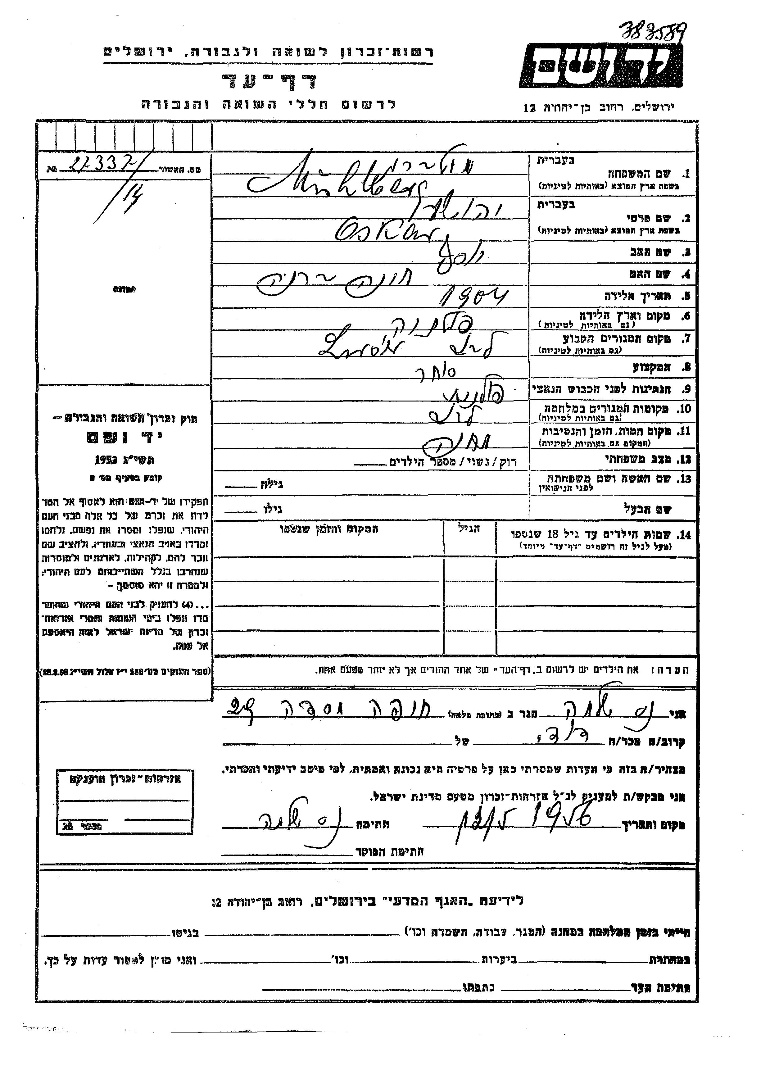 יהושוע אוסקר Muhlberg נולד בפולין בשנת 1904 ליוסף וחונה ברניה. הוא היה סוחר. לפני מלחמת העולם השניה התגורר בLwow שבפולין. בזמן המלחמה הוא היה בLwow שבפולין. יהושוע אוסקר נרצח בשואה.