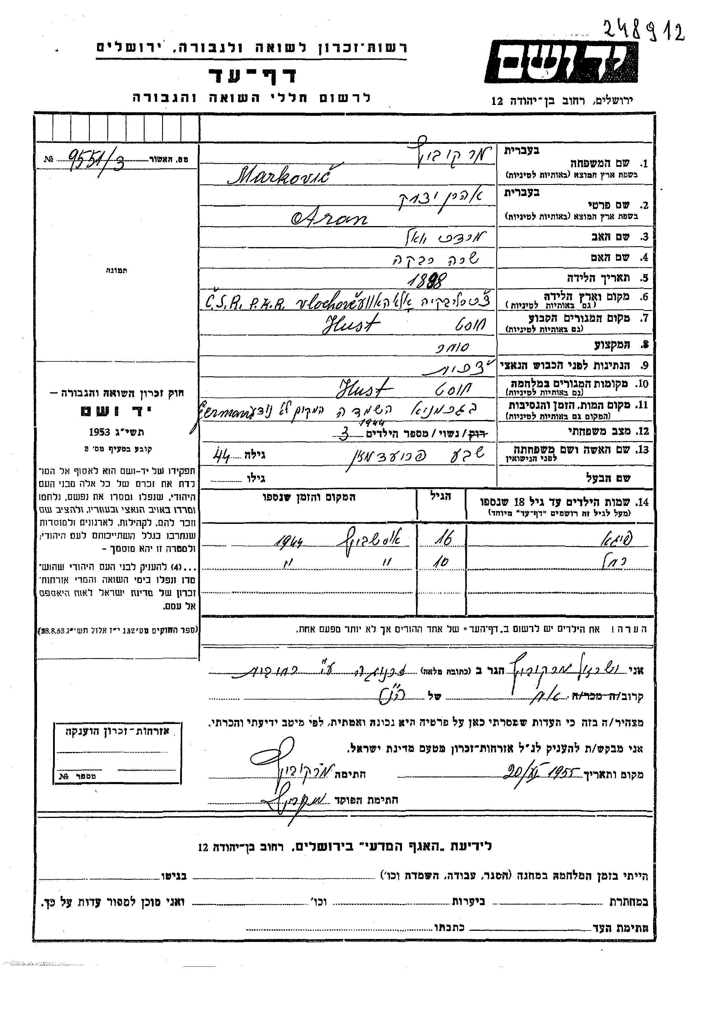 יד ושם - המפעל להנצחת השמות בדפי עד