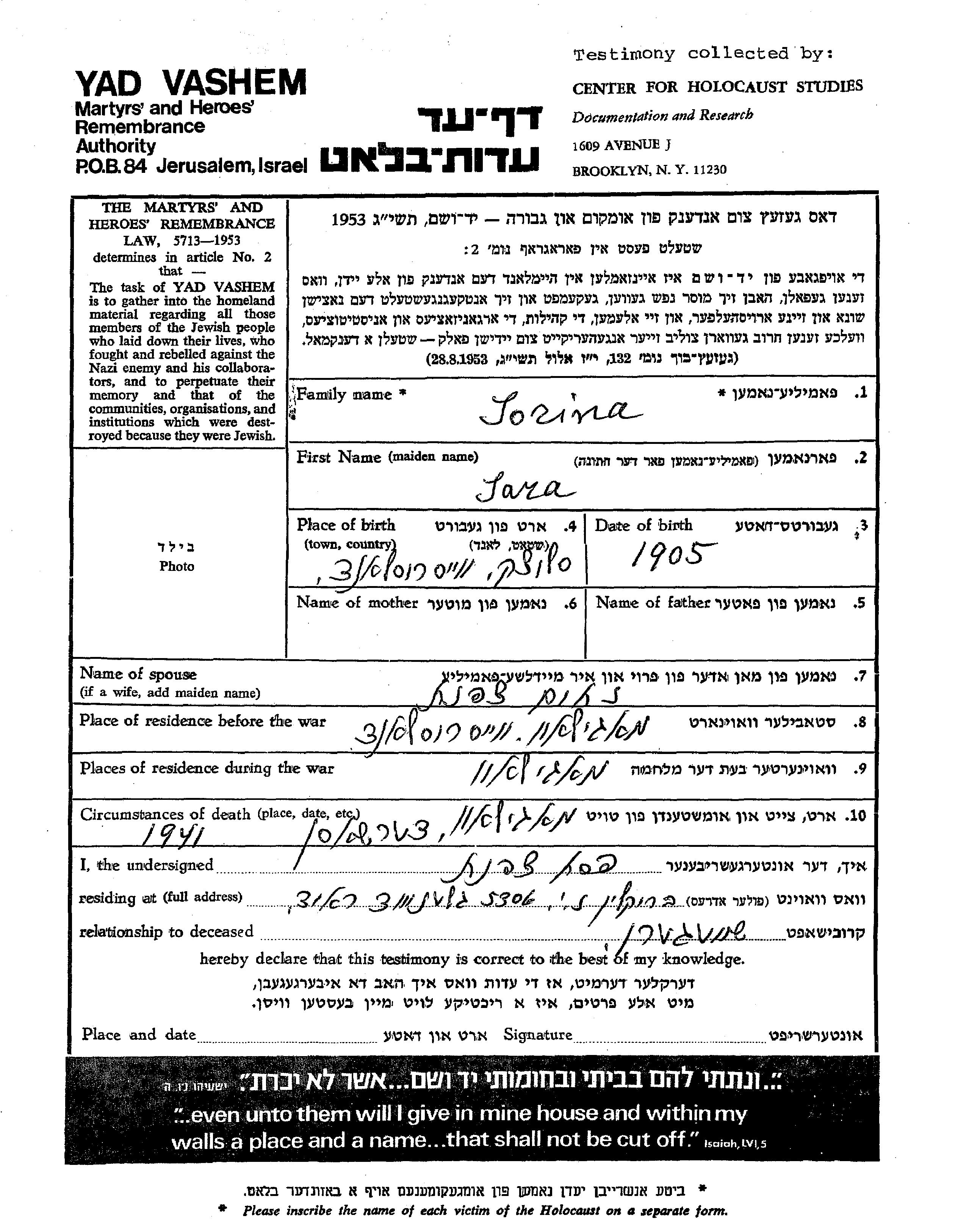 שרה Sorina צפנת לבית Sorina נולדה בSluck שבביאלורוסיה (ברה"מ) בשנת 1905. היא היתה נשואה לנחום. לפני מלחמת העולם השניה התגוררה בMogilev שבביאלורוסיה (ברה"מ). בזמן המלחמה היא היתה בMogilev שבביאלורוסיה (ברה"מ). שרה נרצחה בשואה. מקום המוות: Mogilev שבביאלורוסיה (ברה"מ) בשנת 1941.
