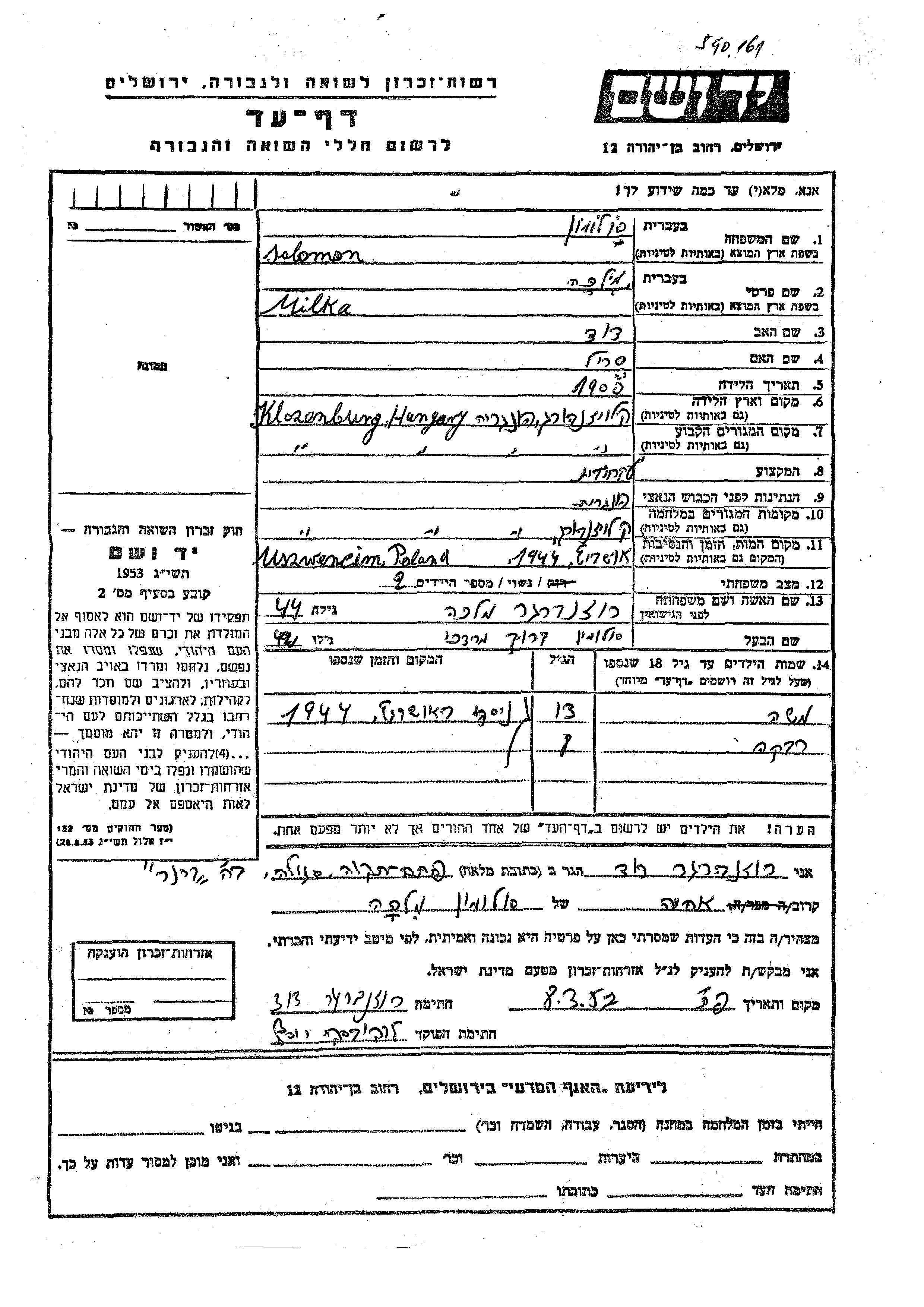 סולומון משה Klozenburg, רומניה דף-עד
