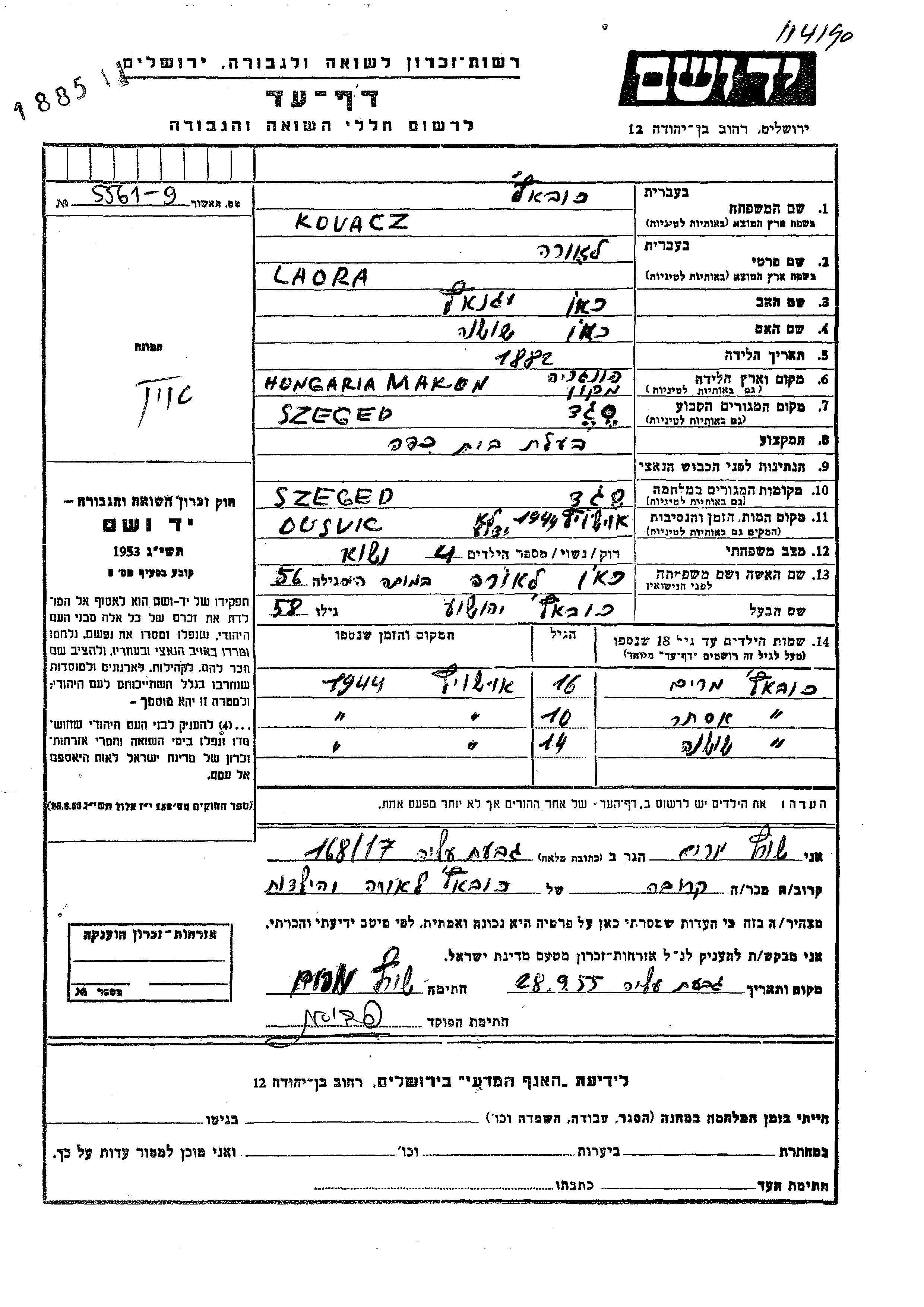 מרים Kovacz נולדה ליהושע וLaora לבית כאן. היא היתה ילדה. לפני מלחמת העולם השניה התגוררה בSzegedin שבהונגריה. בזמן המלחמה היא היתה בSzegedin שבהונגריה.