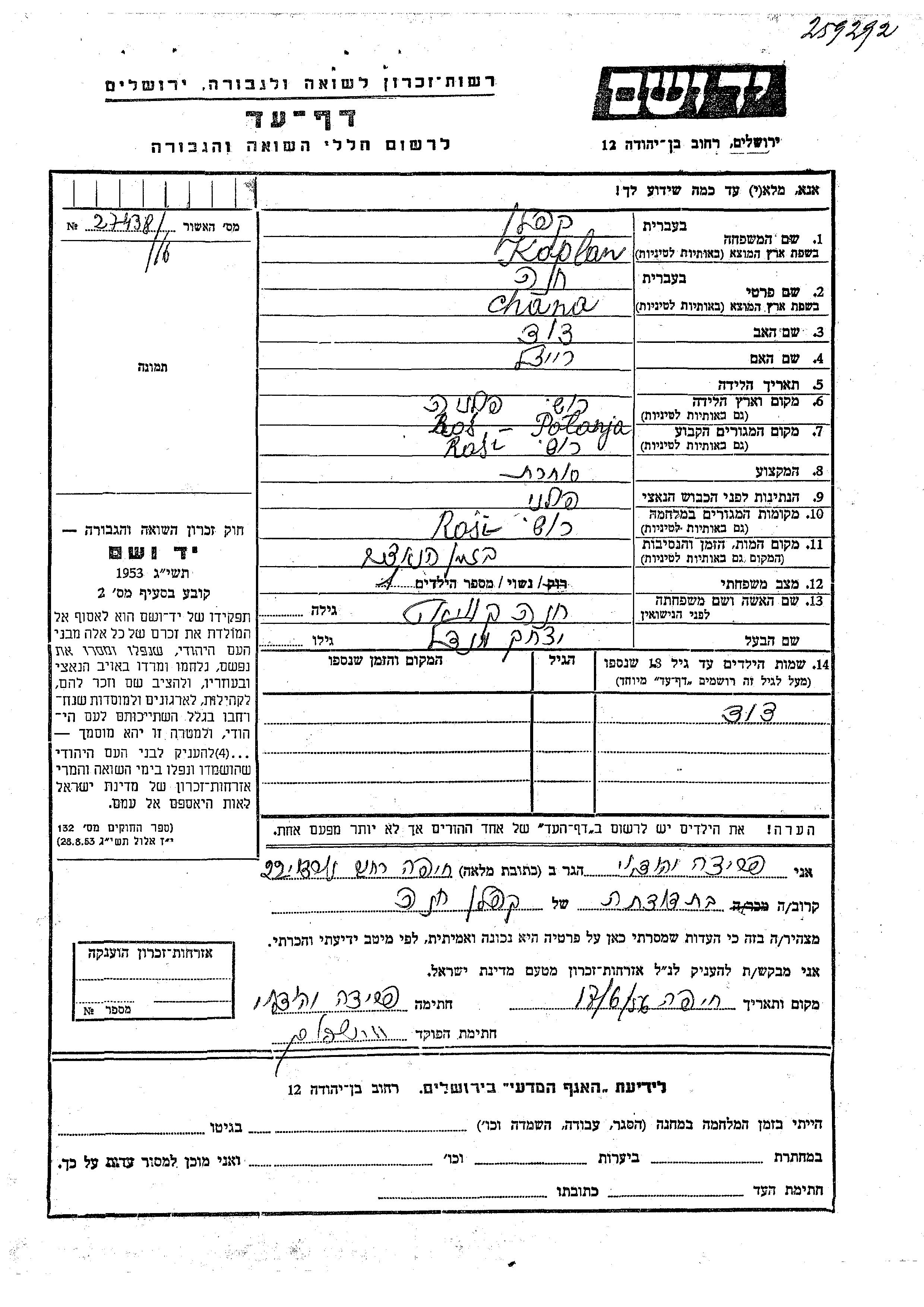 חיפוש שם מוסר דף העד. חיפוש לפי כל שם פרטי, כולל כינוי או שם חיבה