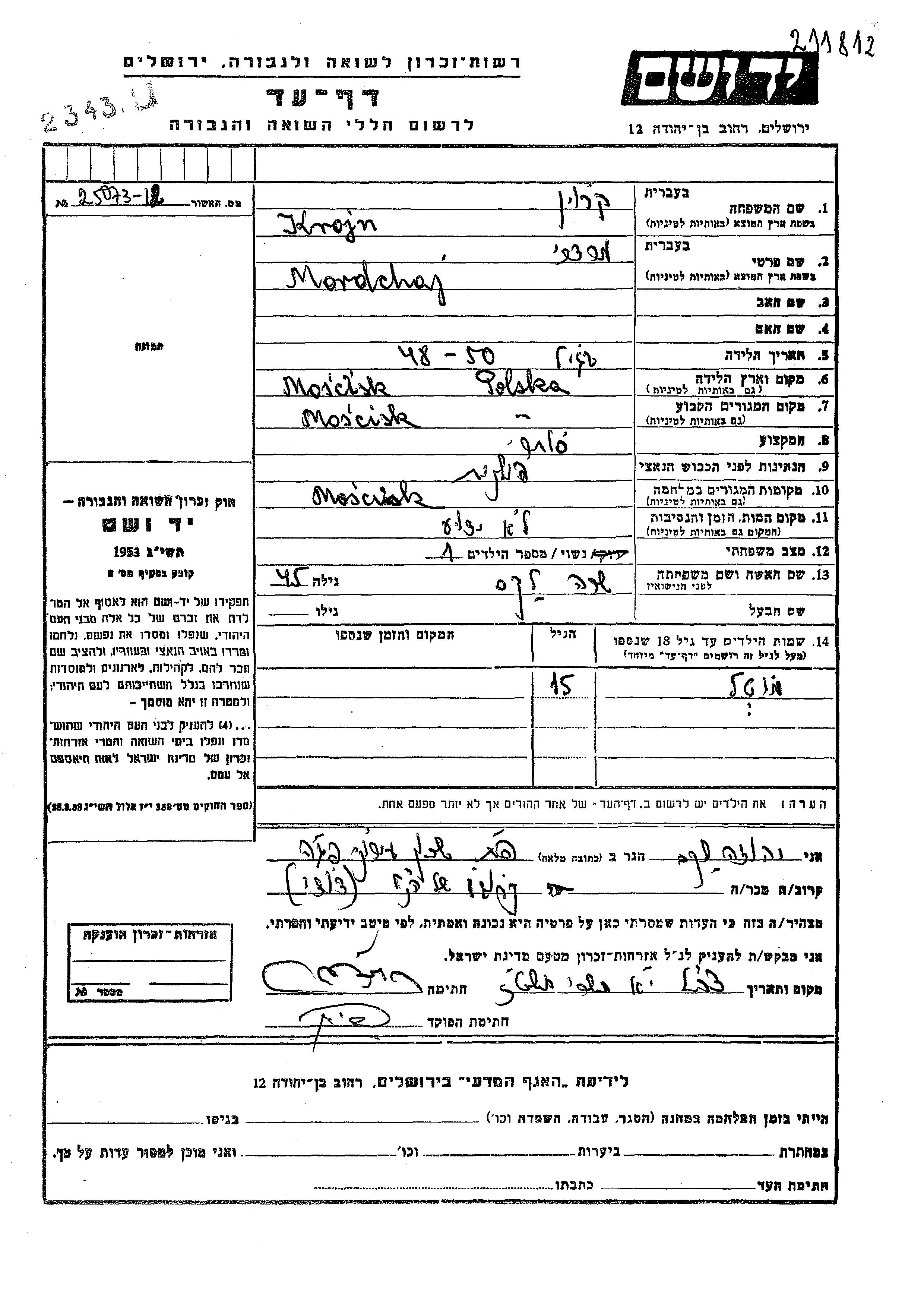 יד ושם - המפעל להנצחת השמות בדפי עד