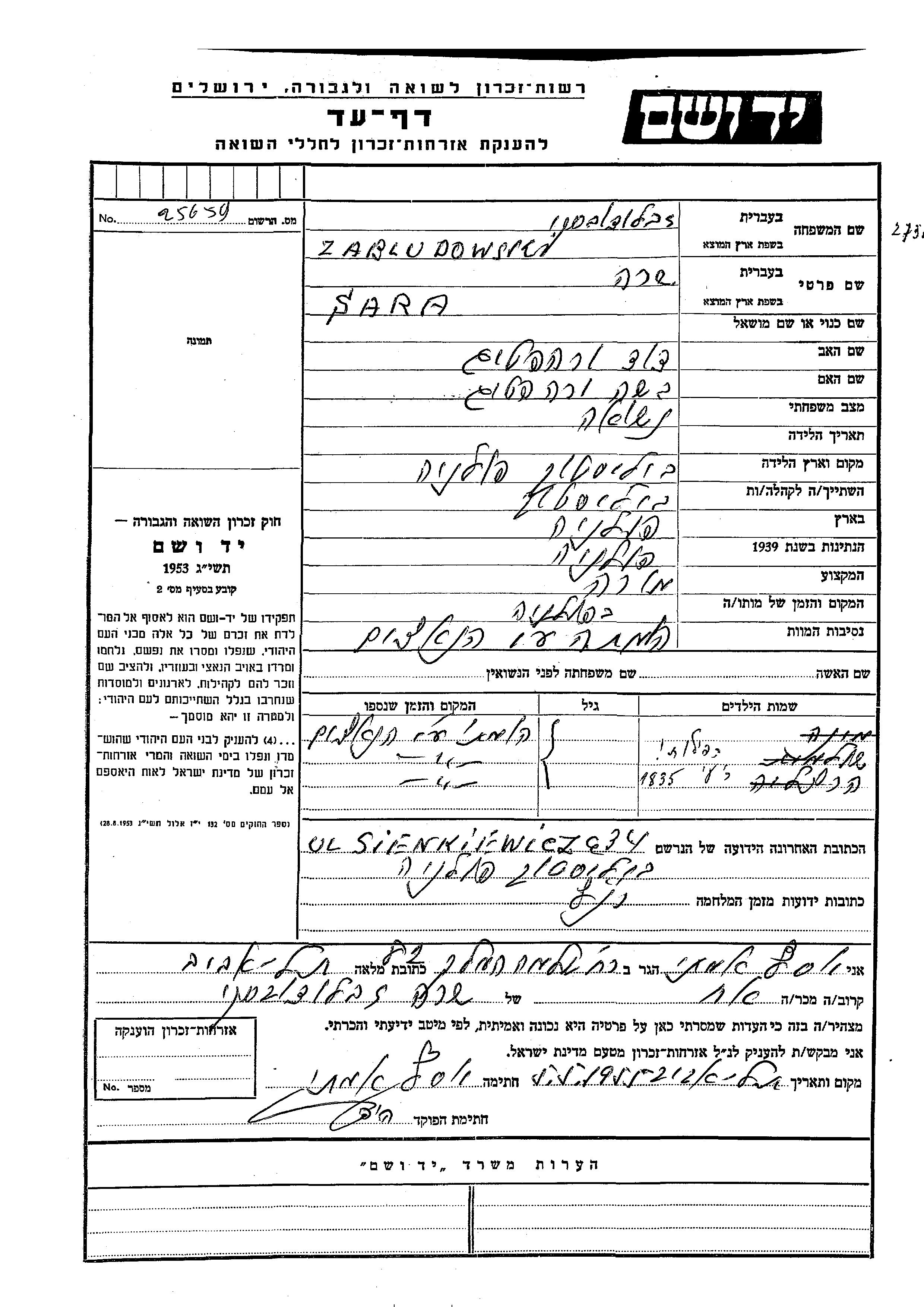 יד ושם - המפעל להנצחת השמות בדפי עד