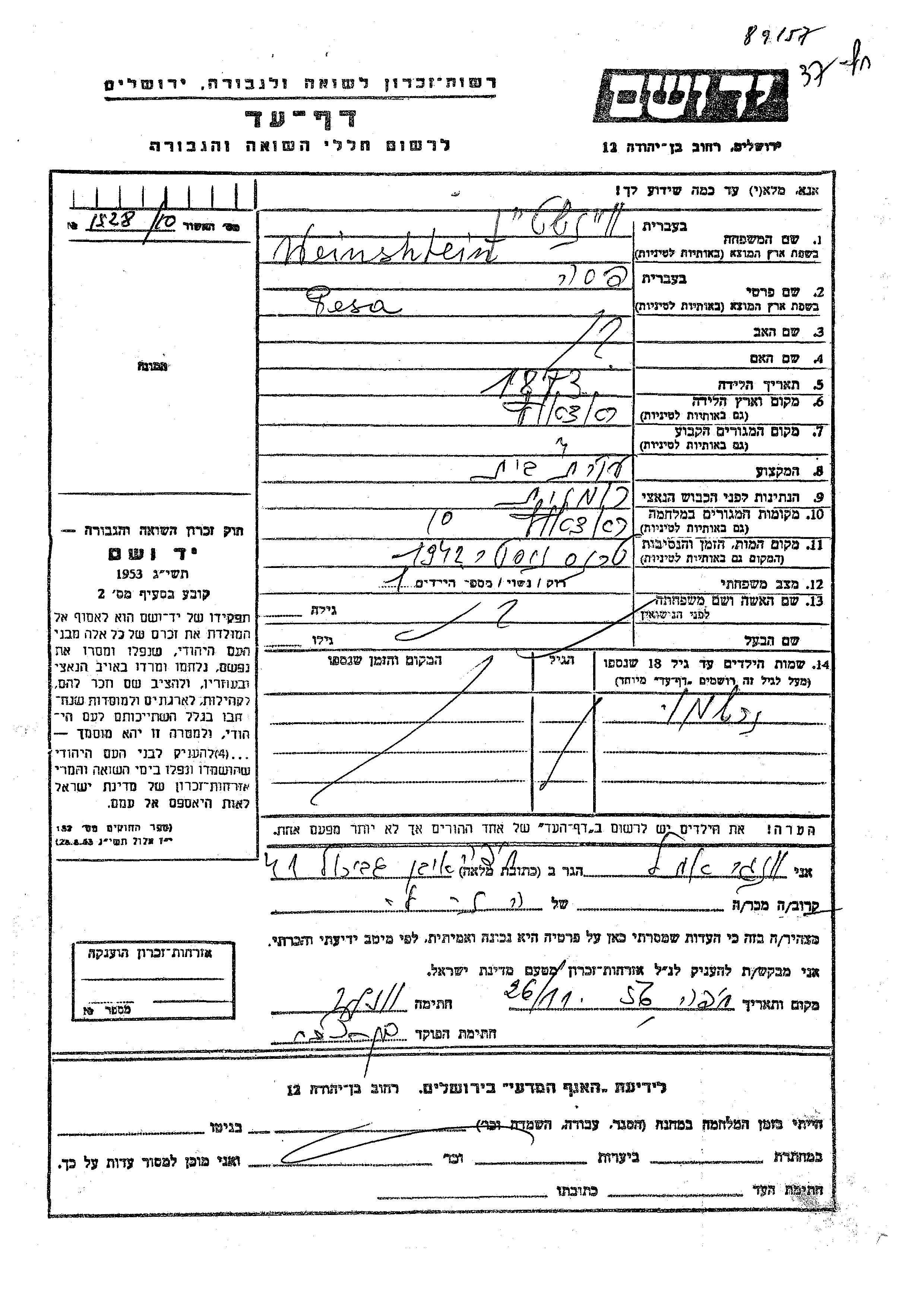 חיפוש שם מוסר דף העד. חיפוש לפי כל שם פרטי, כולל כינוי או שם חיבה