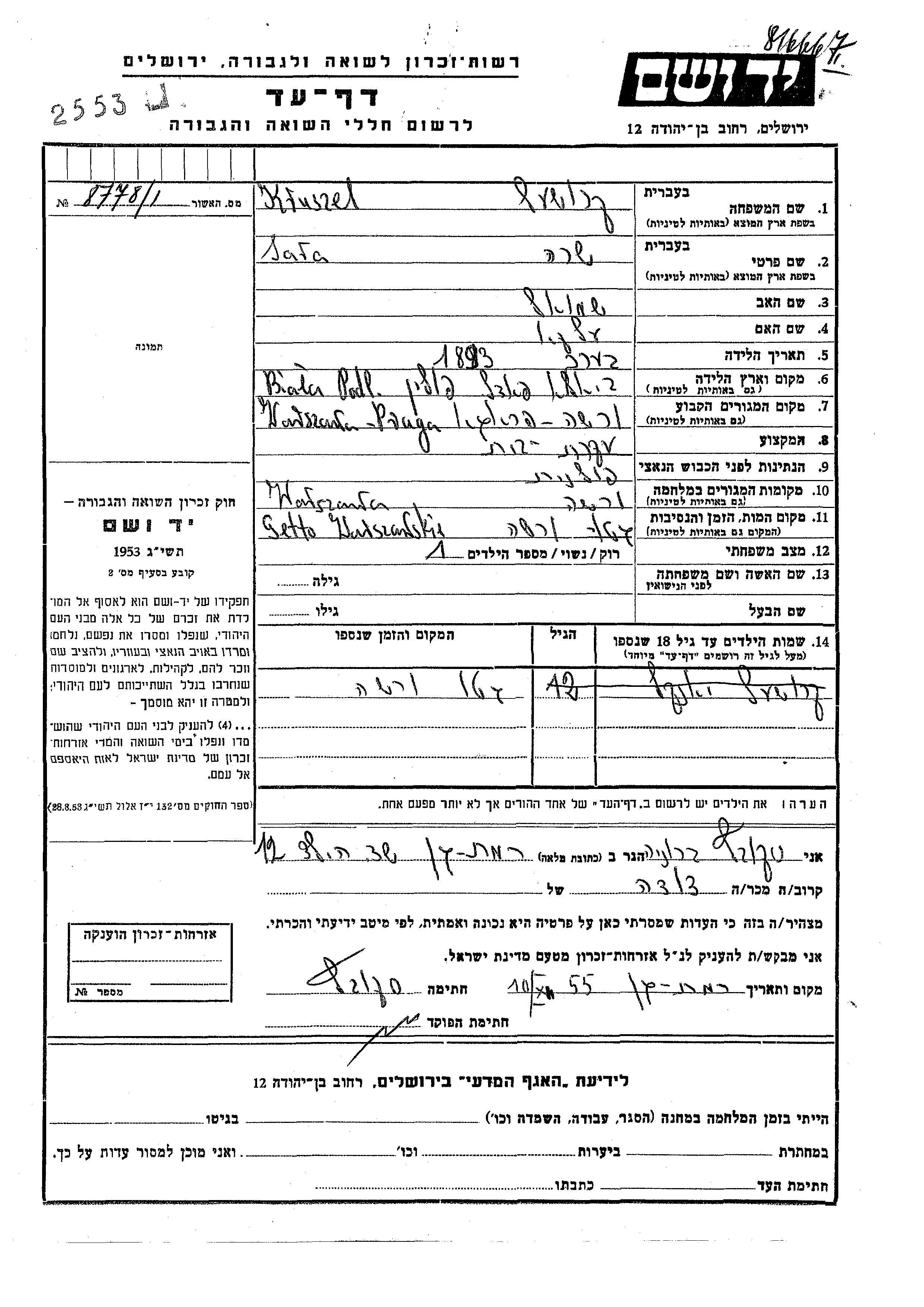 יד ושם - המפעל להנצחת השמות בדפי עד