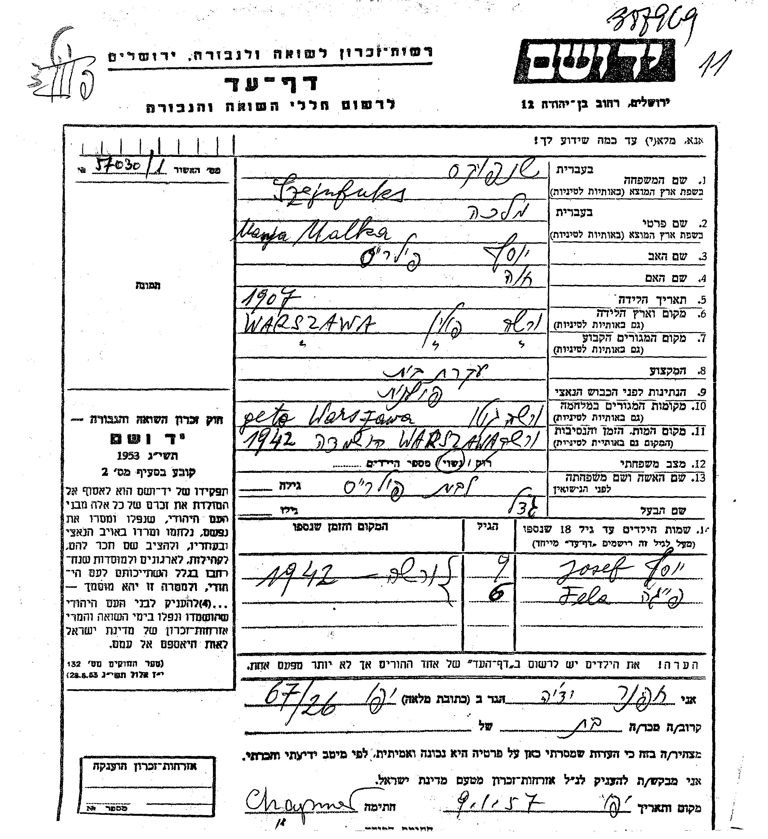 חיפוש שם מוסר דף העד. חיפוש לפי כל שם פרטי, כולל כינוי או שם חיבה