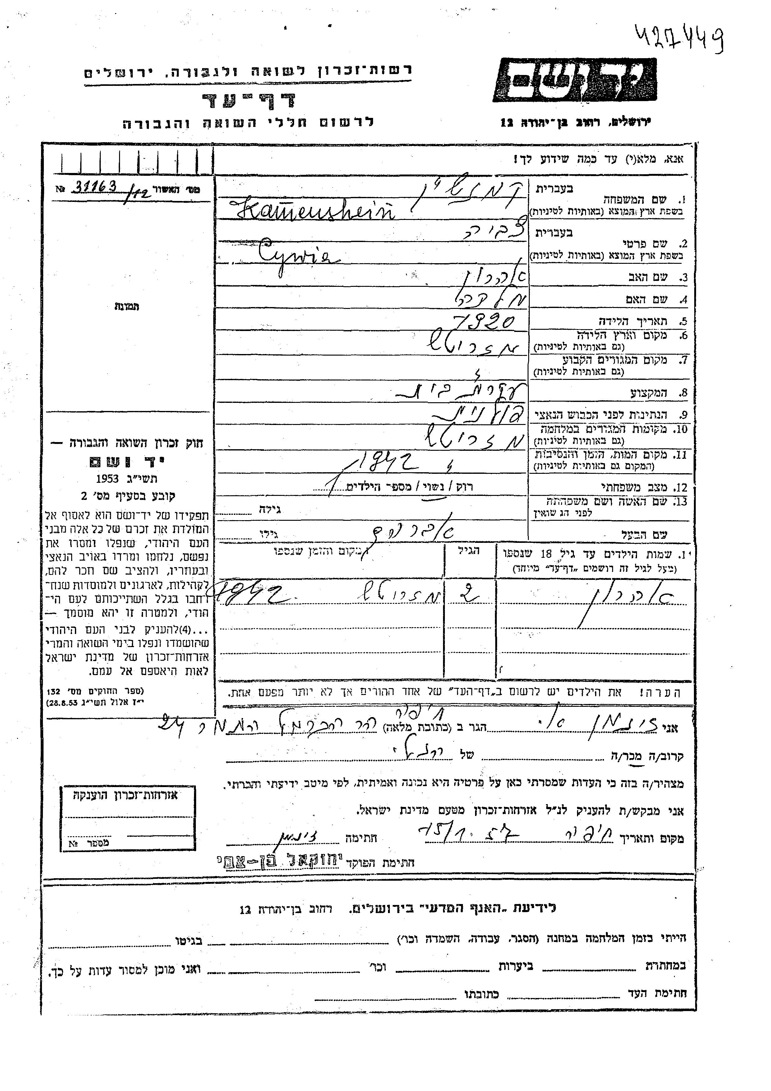 יד ושם - המפעל להנצחת השמות בדפי עד