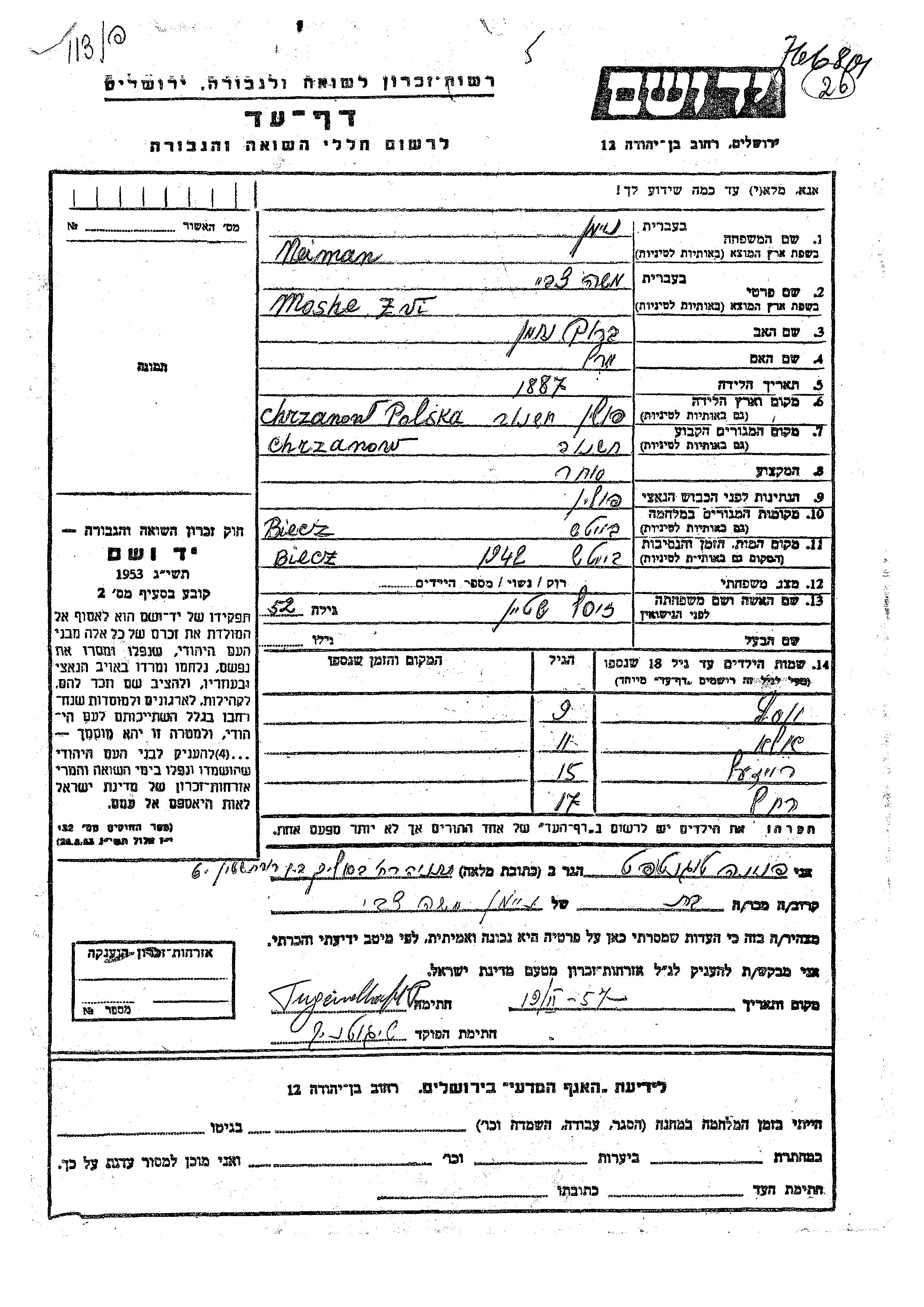 יד ושם - המפעל להנצחת השמות בדפי עד