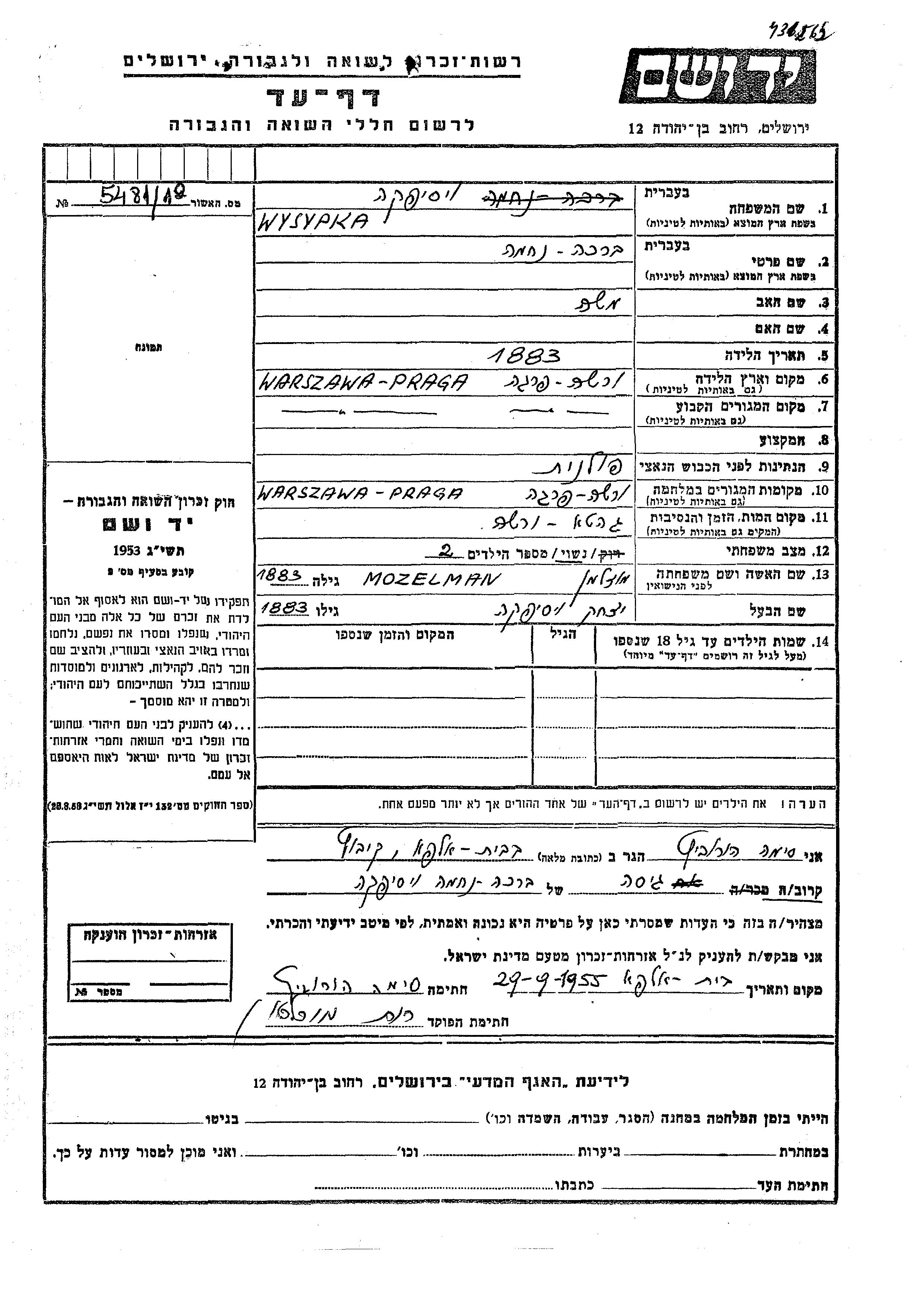 יד ושם - המפעל להנצחת השמות בדפי עד