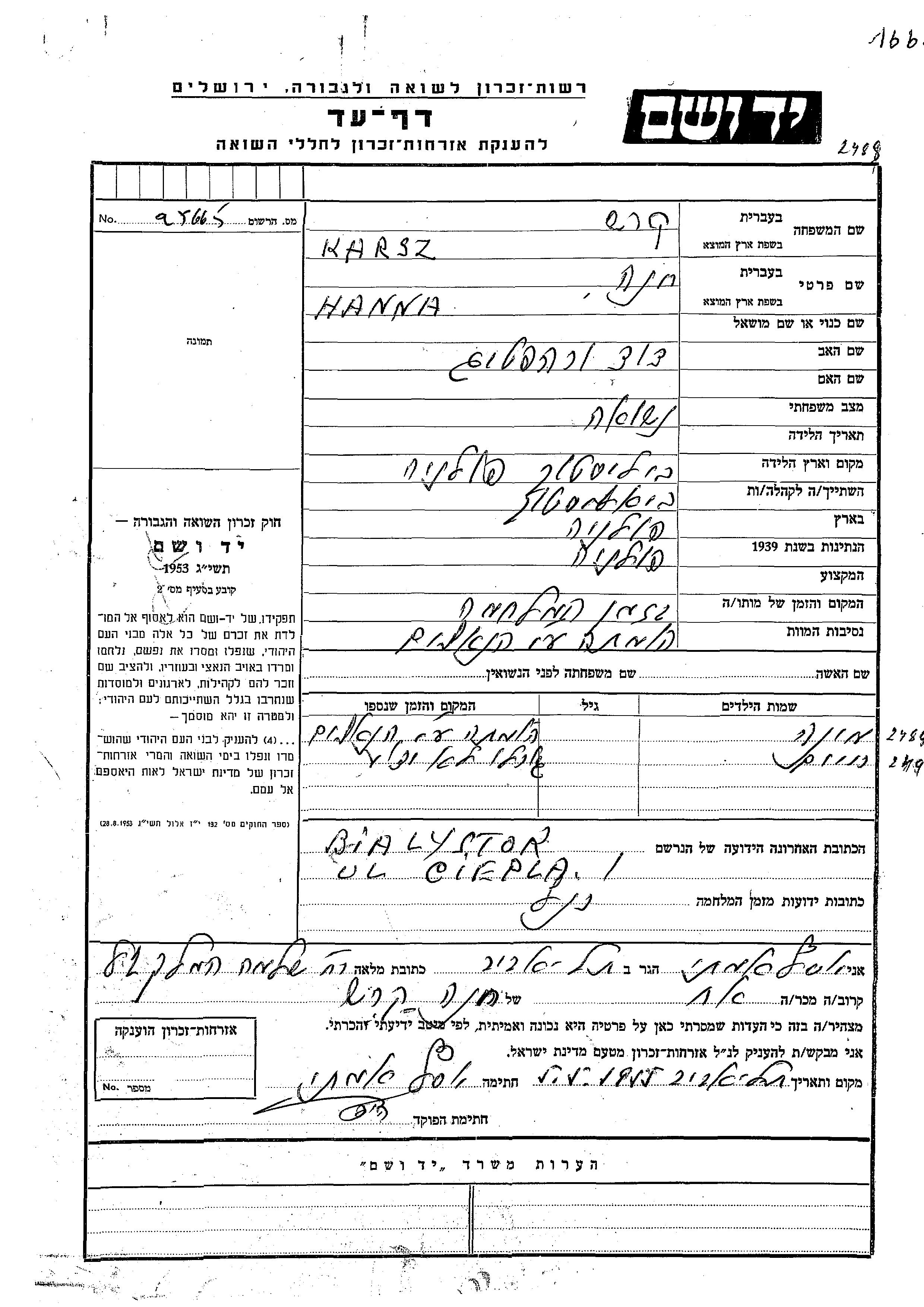 מינה Karsz קרש נולד/ה לHanna לבית ורהפטיג. הוא/היא היה/היתה ילד/ילדה. לפני מלחמת העולם השניה התגורר/התגוררה בBialystok שבפולין. בזמן המלחמה הוא/היא היה/היתה בBialystok שבפולין. מינה נרצח/ה בשואה.