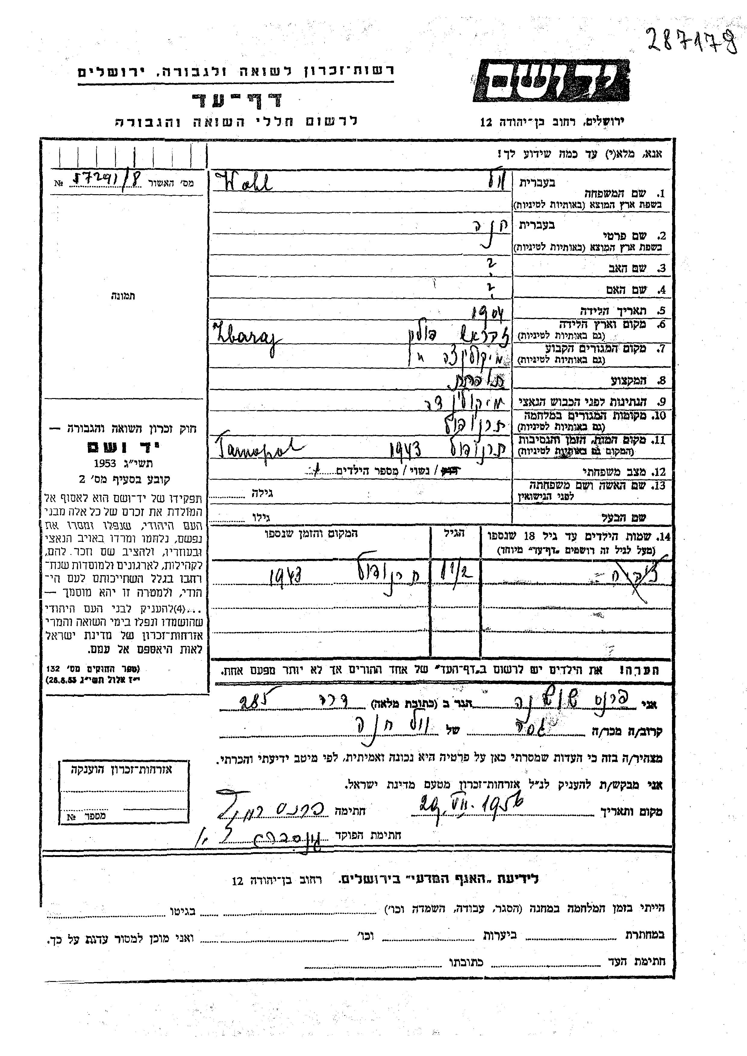 יד ושם - המפעל להנצחת השמות בדפי עד