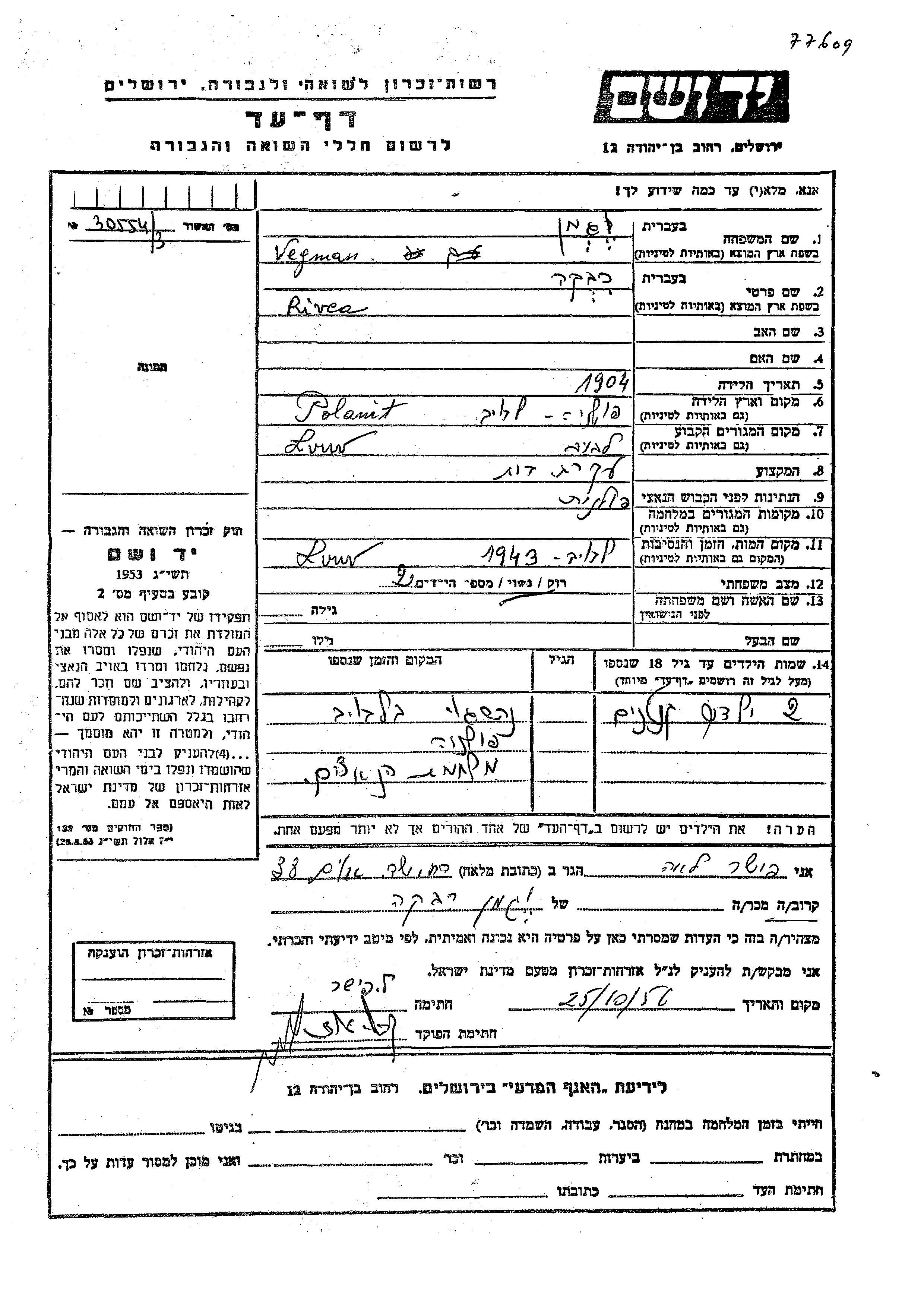 וגמן Rivca 1904 Lwow, פולין דף-עד
