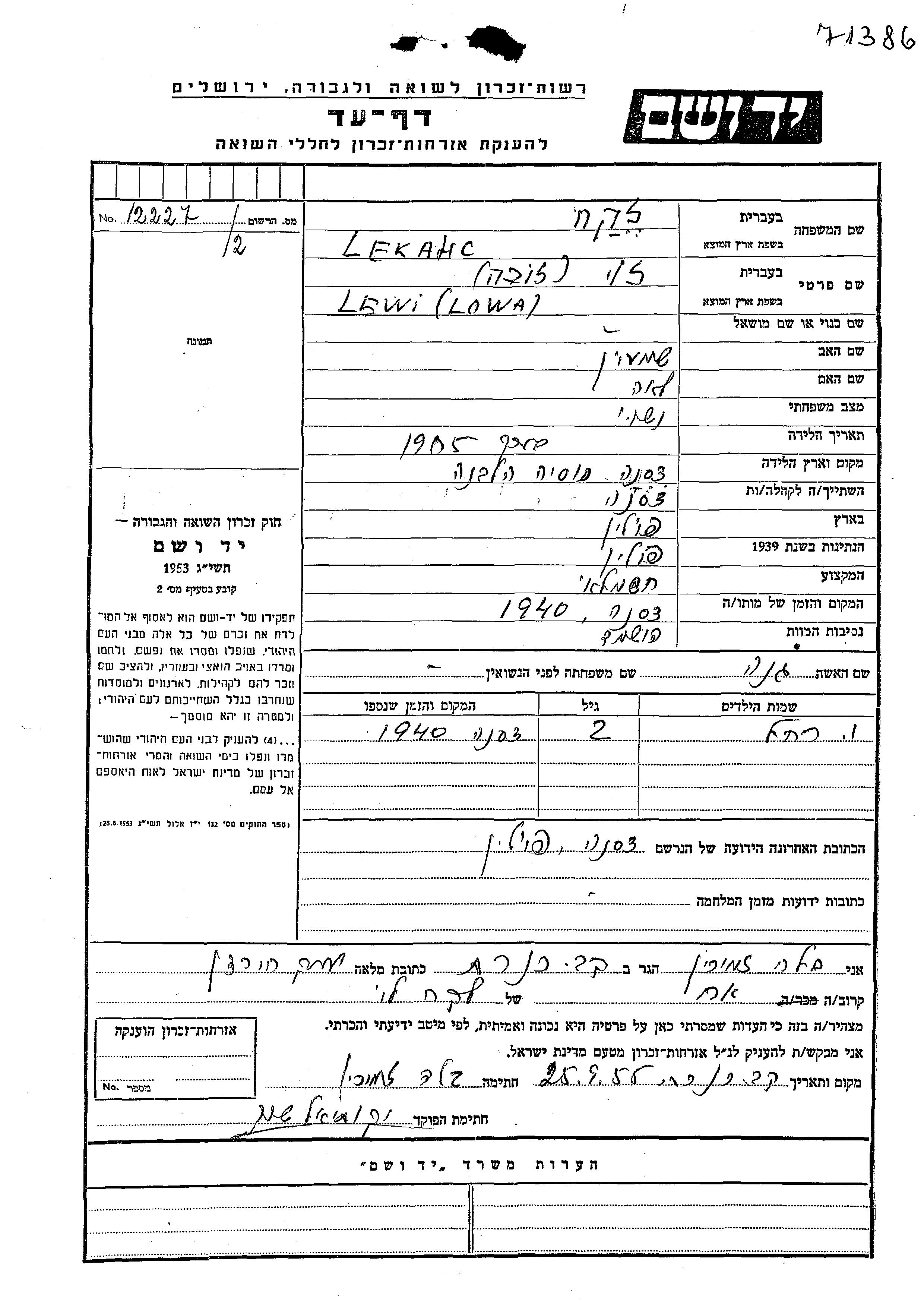 חיפוש שם מוסר דף העד. חיפוש לפי שם משפחה; כולל גם תוצאות חיפוש לפי שם הנעורים של אישה לפני הנישואין