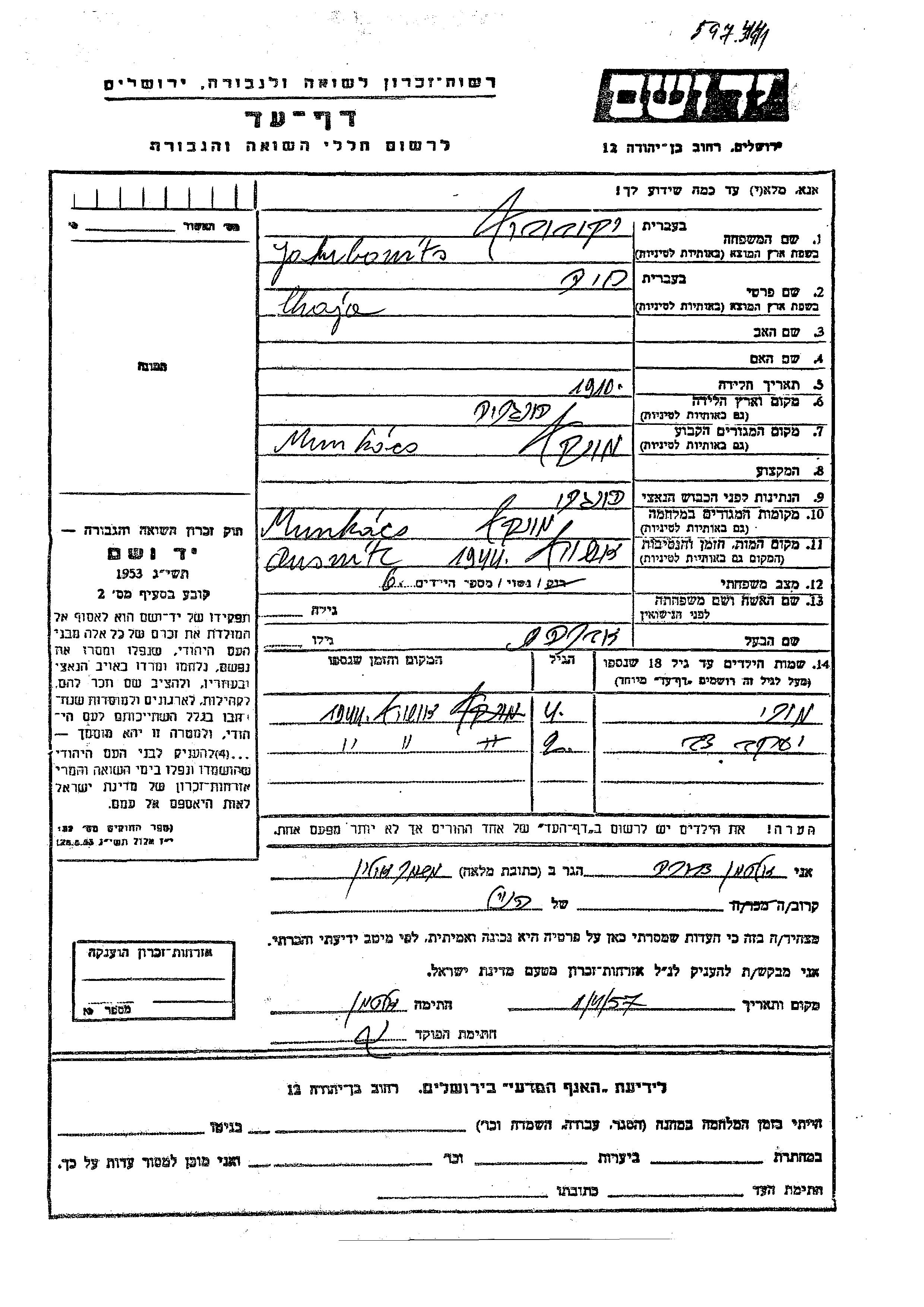 Yakubowits מירי מורי Munkacz, צ'כוסלובקיה דף-עד
