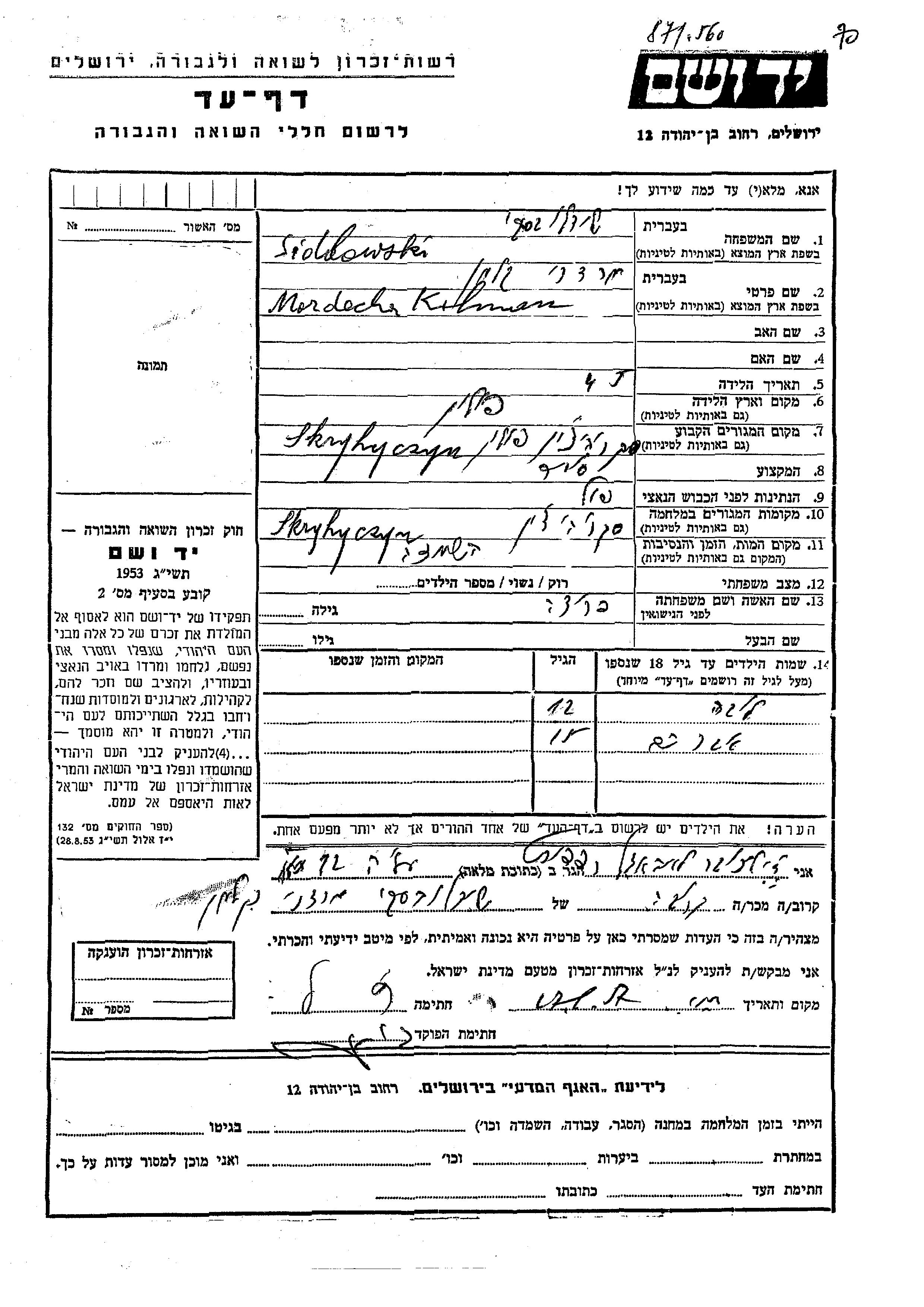 יד ושם - המפעל להנצחת השמות בדפי עד