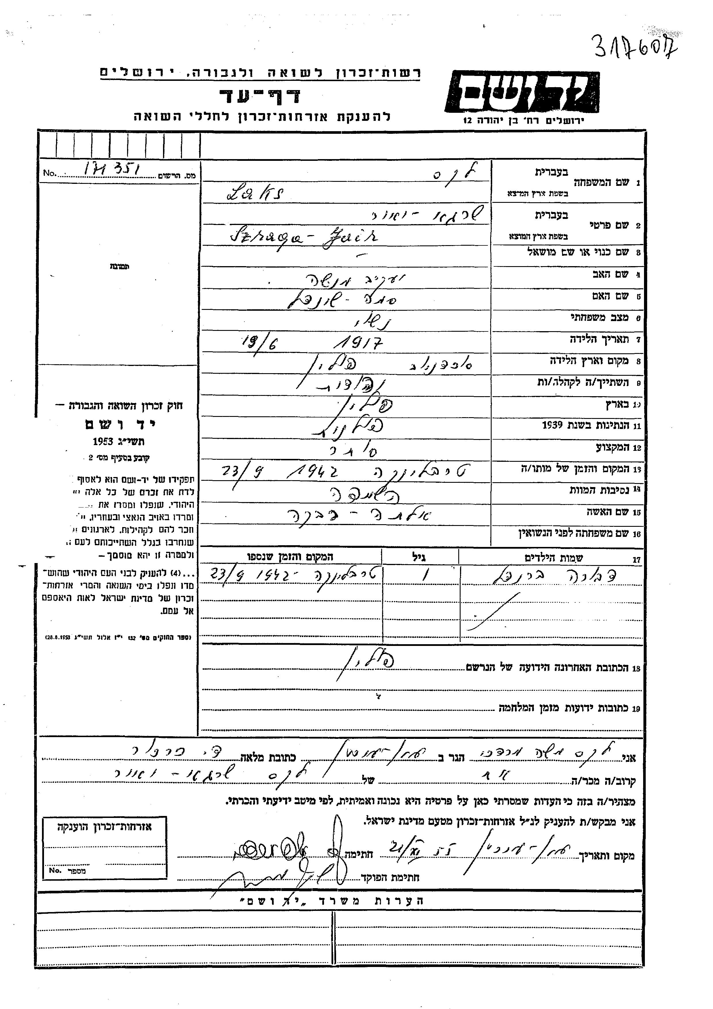 יד ושם - המפעל להנצחת השמות בדפי עד