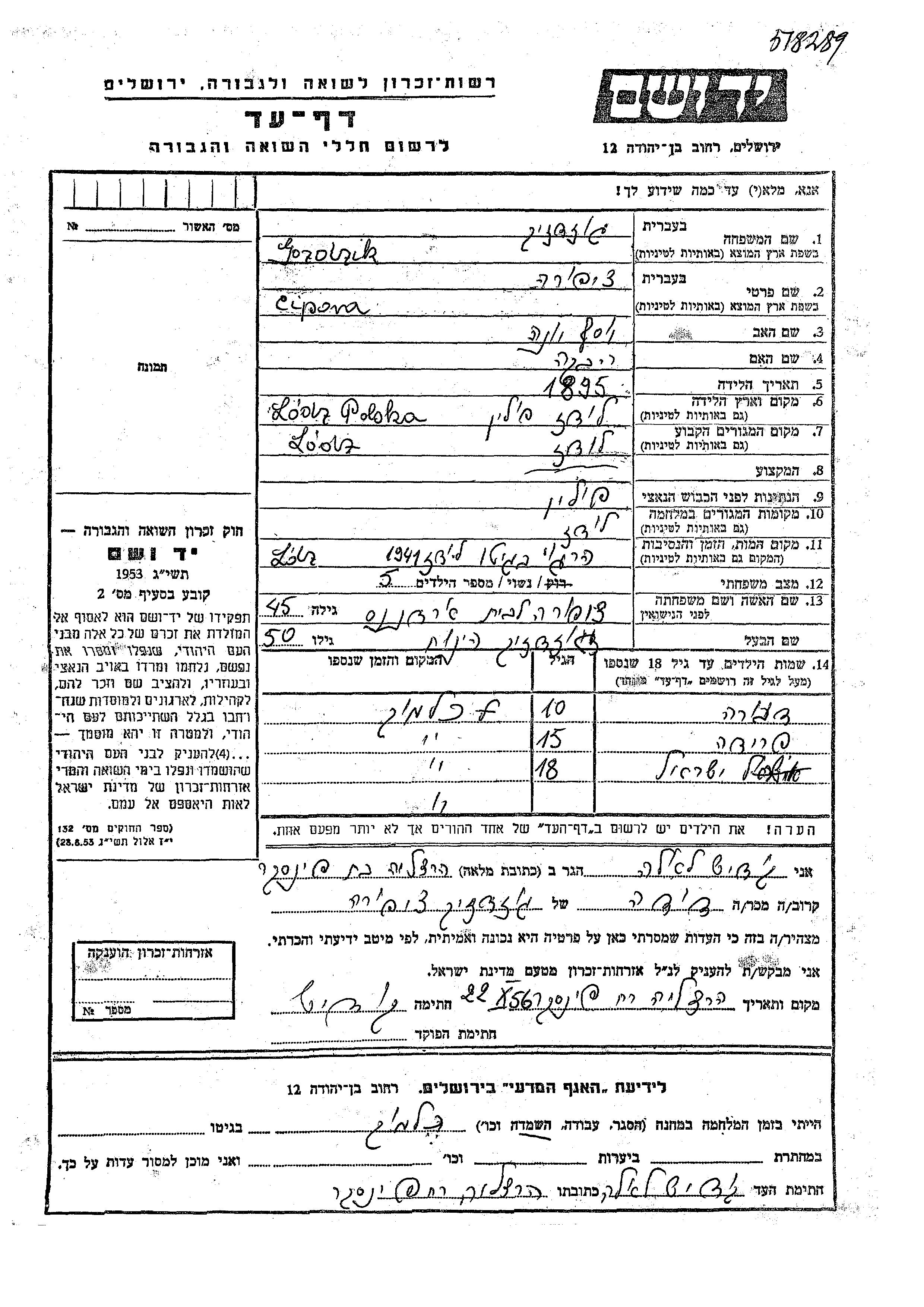 יד ושם - המפעל להנצחת השמות בדפי עד