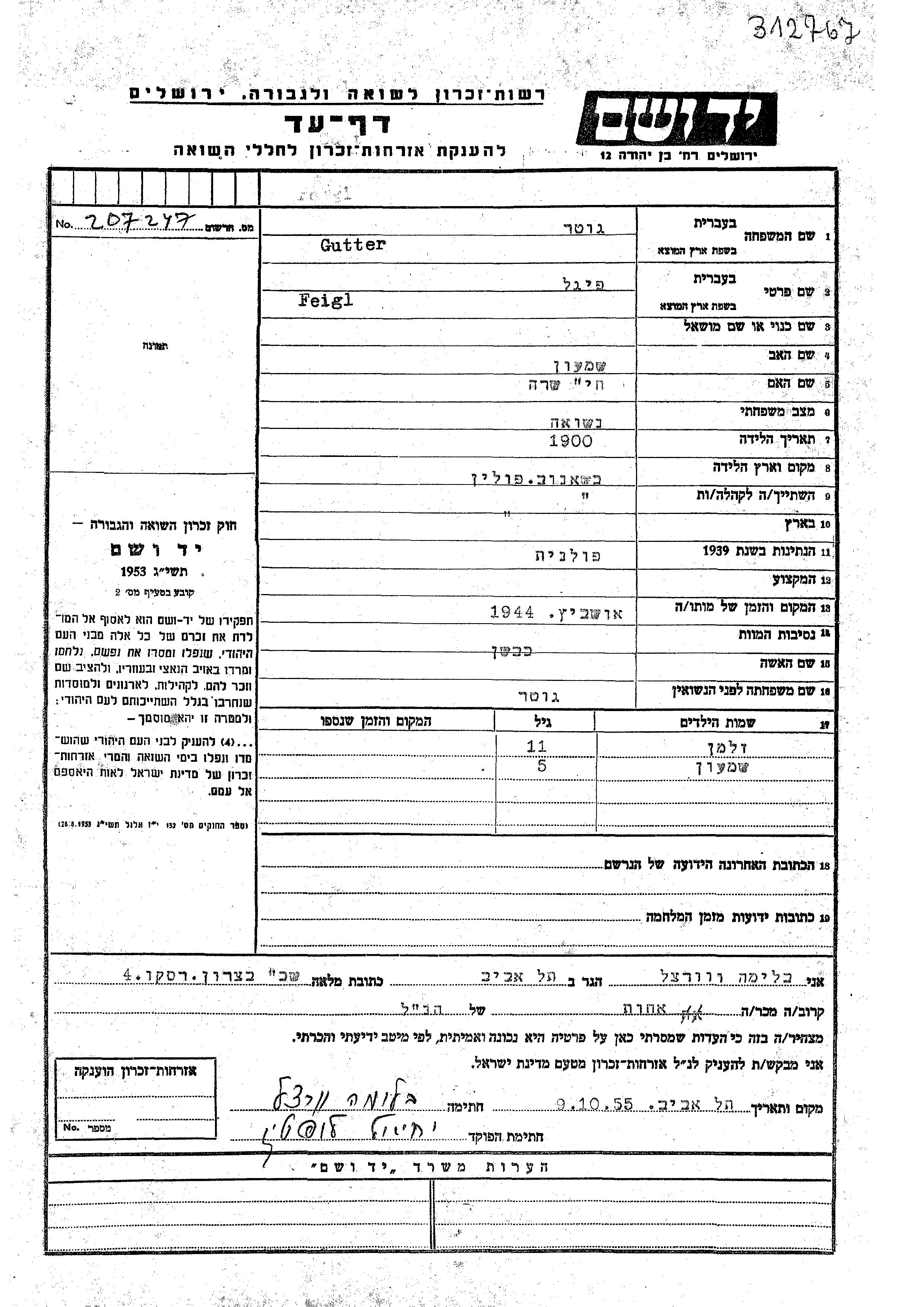 יד ושם - המפעל להנצחת השמות בדפי עד