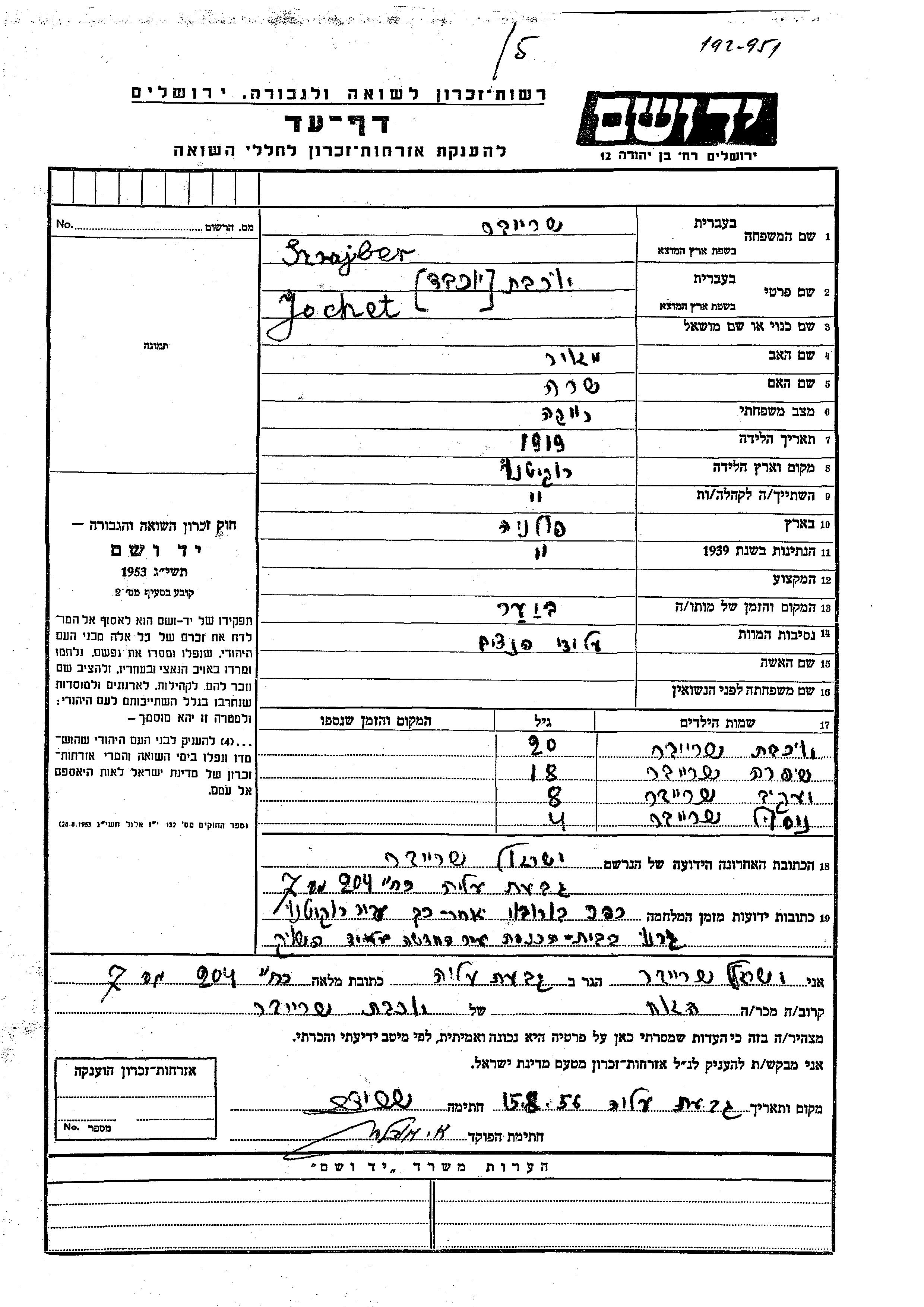 יד ושם - המפעל להנצחת השמות בדפי עד