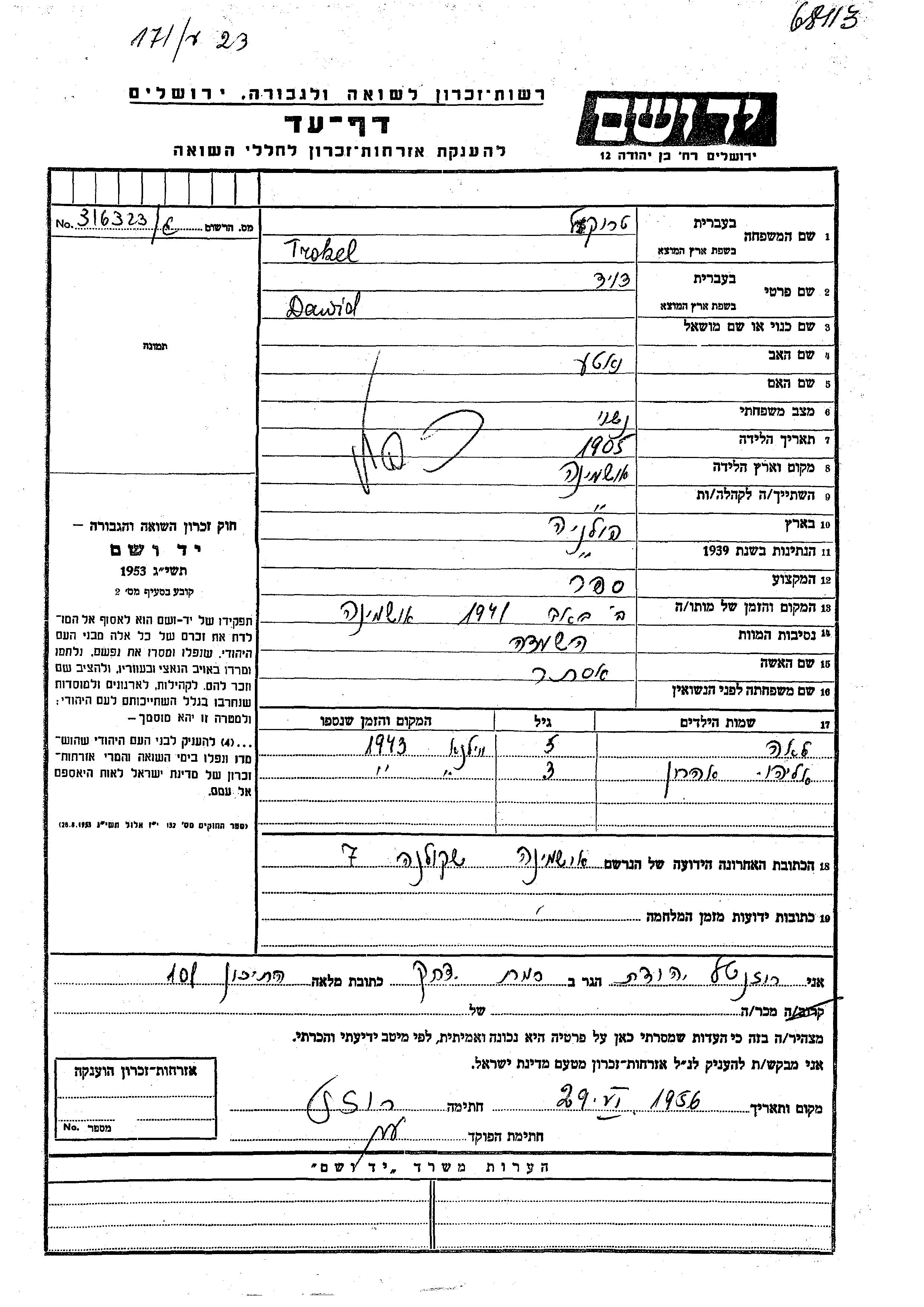 יד ושם - המפעל להנצחת השמות בדפי עד