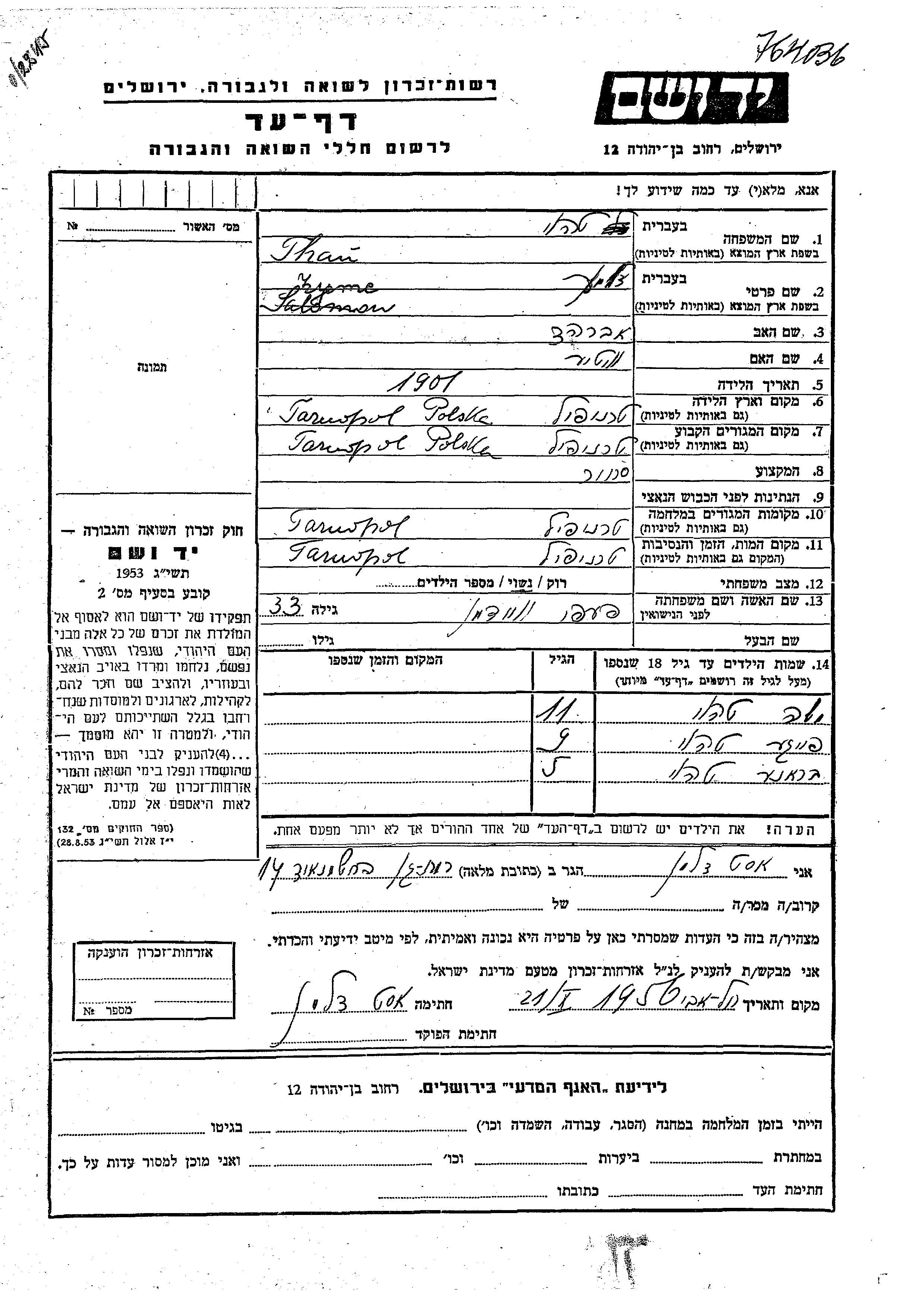 יד ושם - המפעל להנצחת השמות בדפי עד