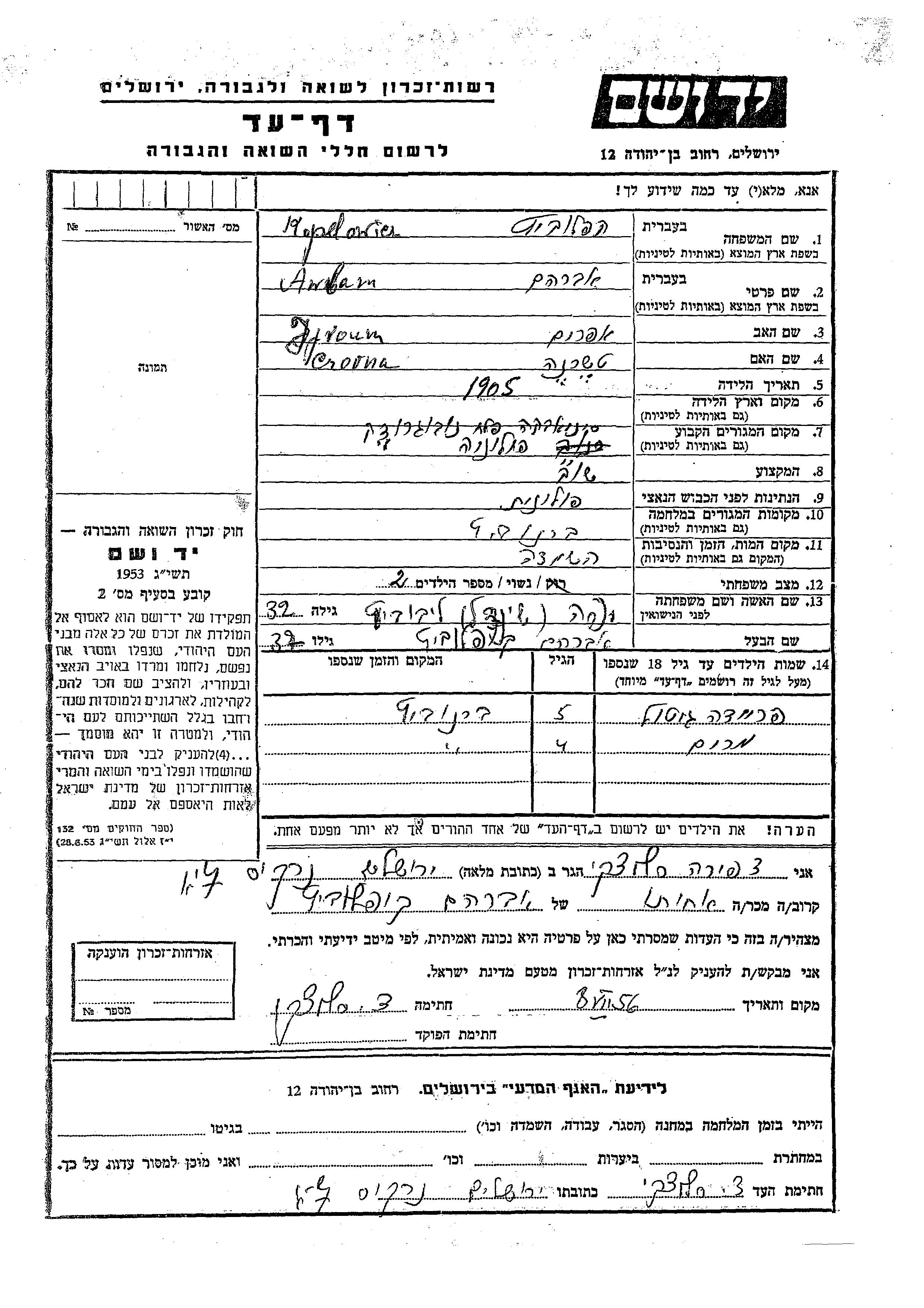 עיר/כפר, גטו/מחנה או אתר רצח או מחוז/אזור או מדינה. שם מקום ניתן לחפש רק בא-ב לטיני.