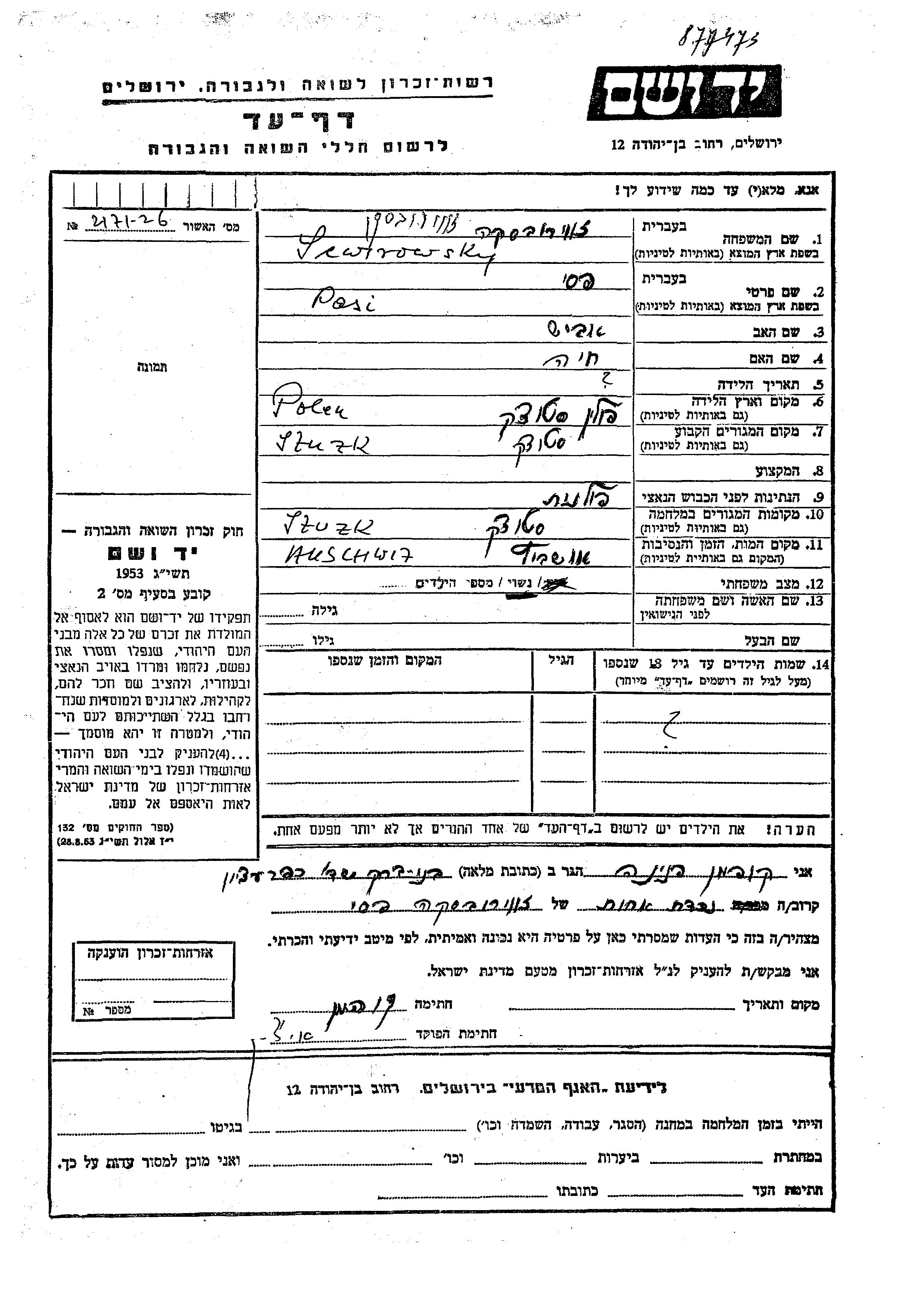 פסי נרצחה בשואה. מקום המוות: Auschwitz שבפולין.