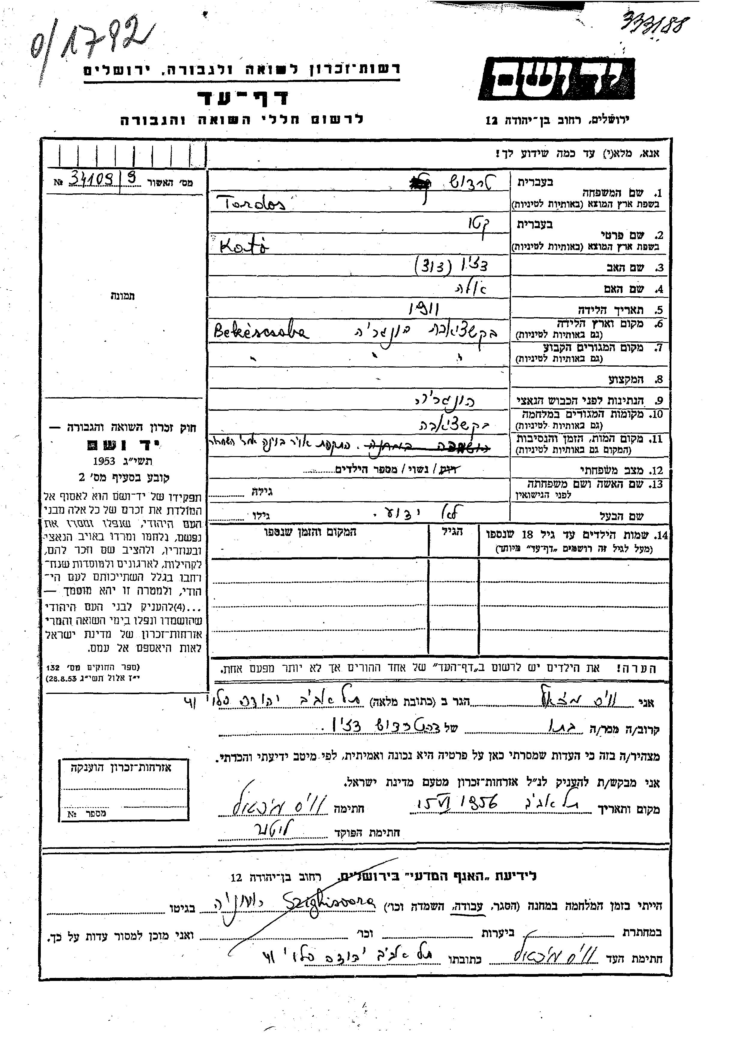 שם משפחה שם פרטי תאריך לידה מקום מקור המידע