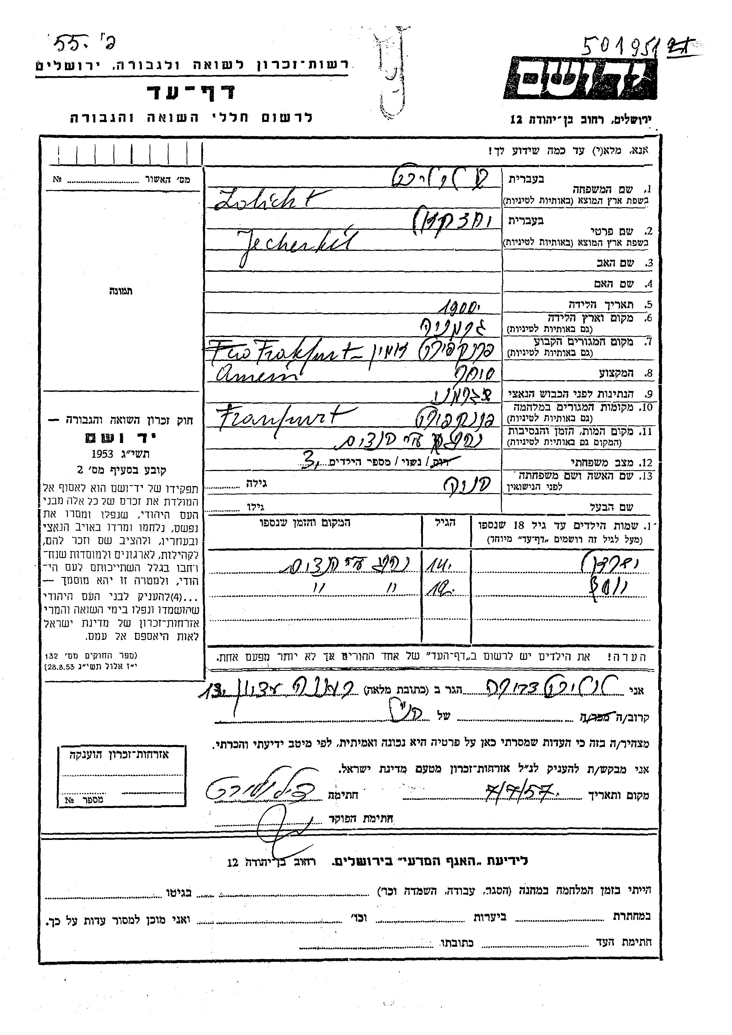 יד ושם - המפעל להנצחת השמות בדפי עד