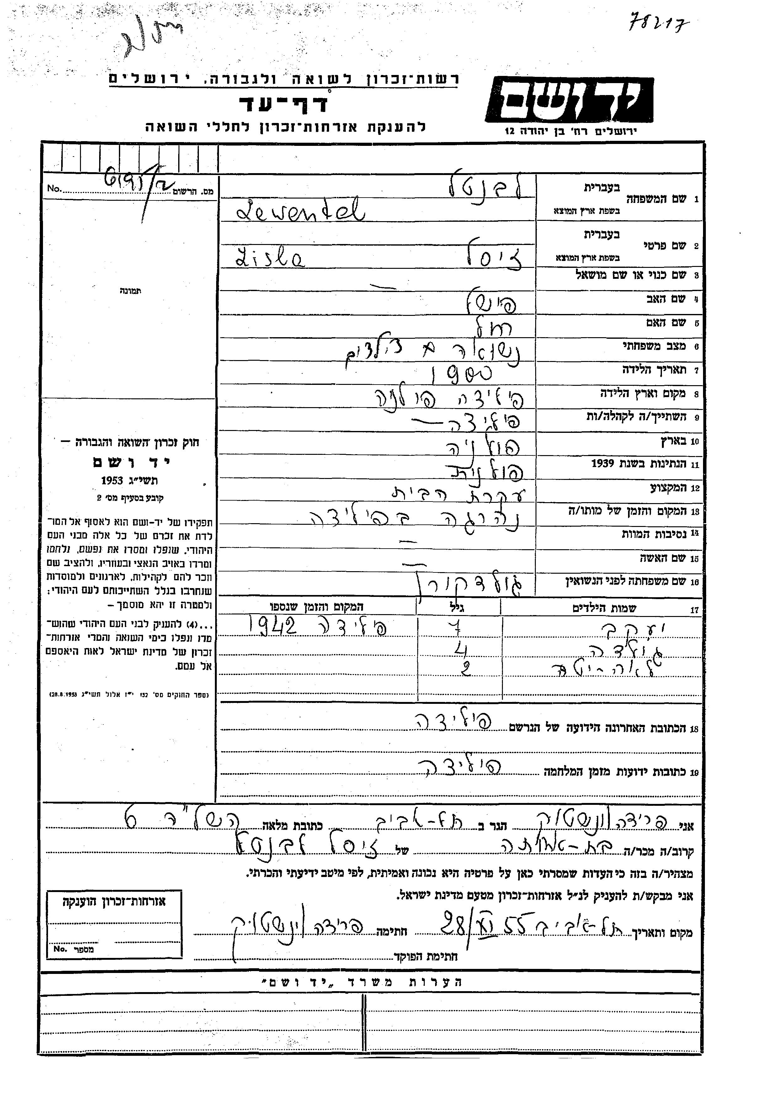 יד ושם - המפעל להנצחת השמות בדפי עד