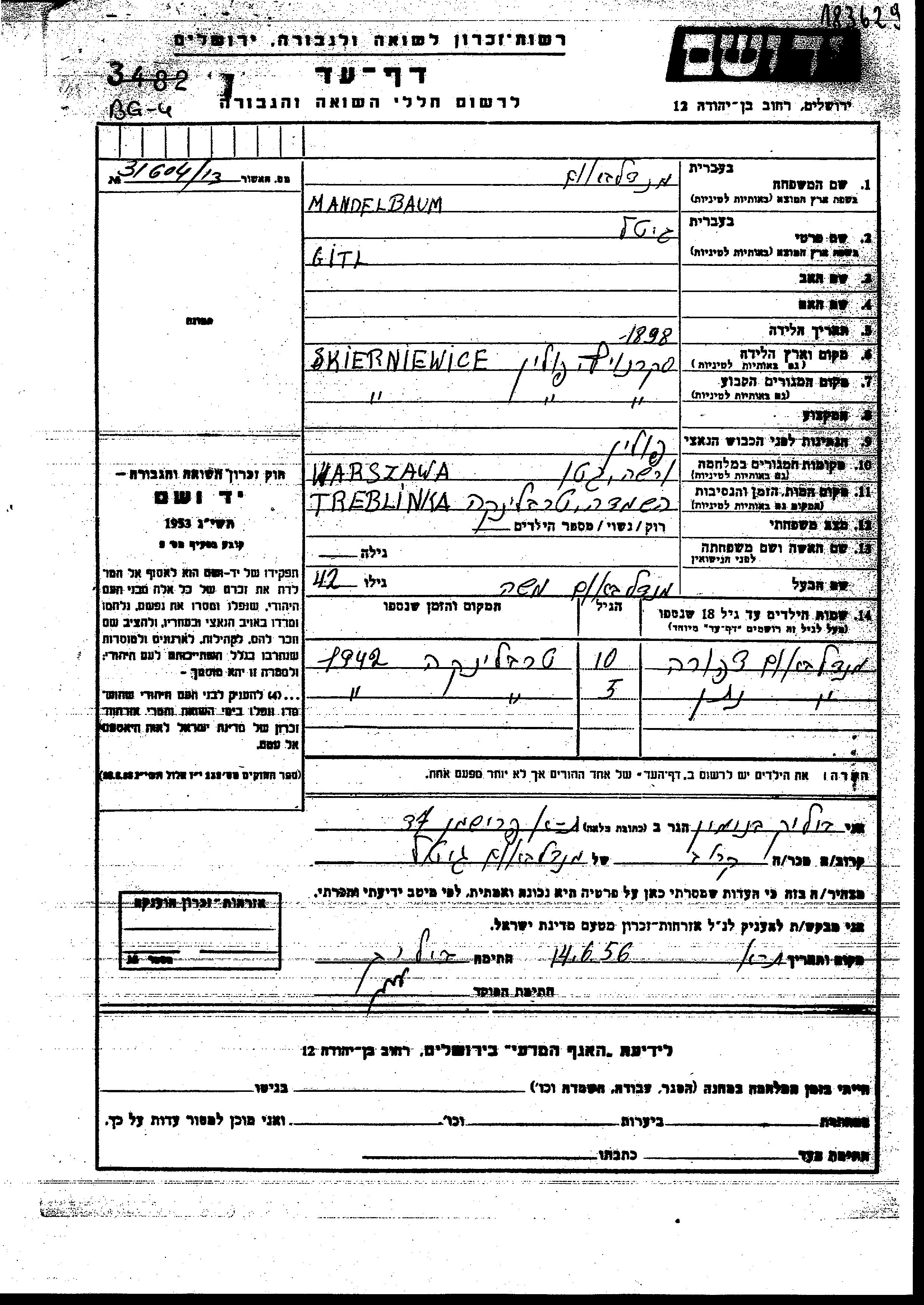 מנדלבאום צפורה Skierniewice, פולין דף-עד