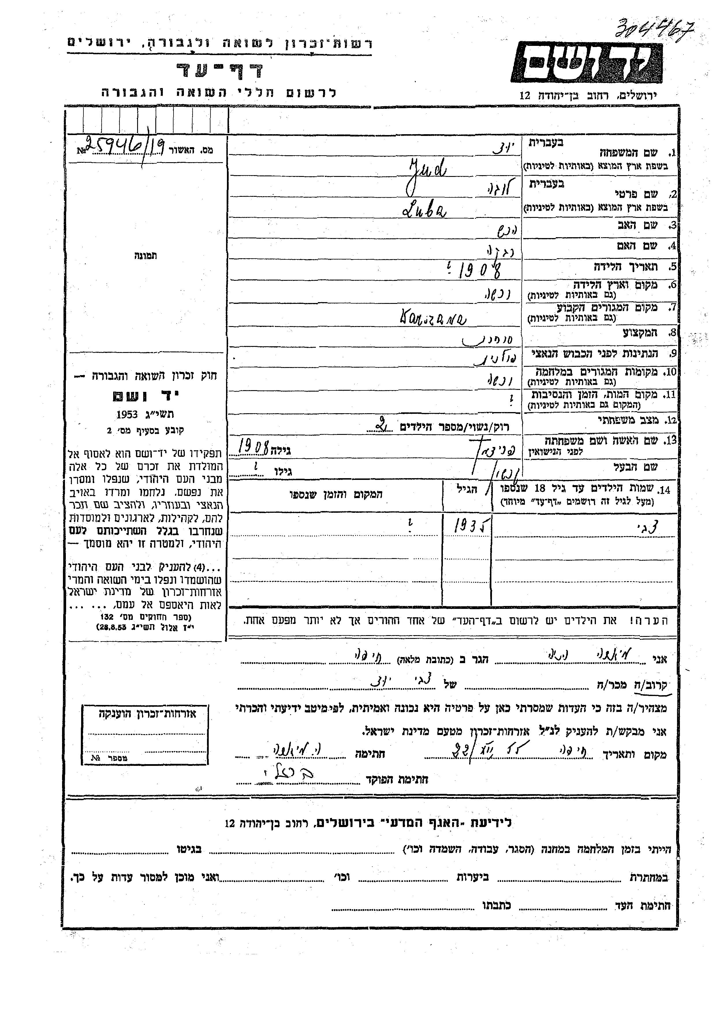 יד ושם - המפעל להנצחת השמות בדפי עד