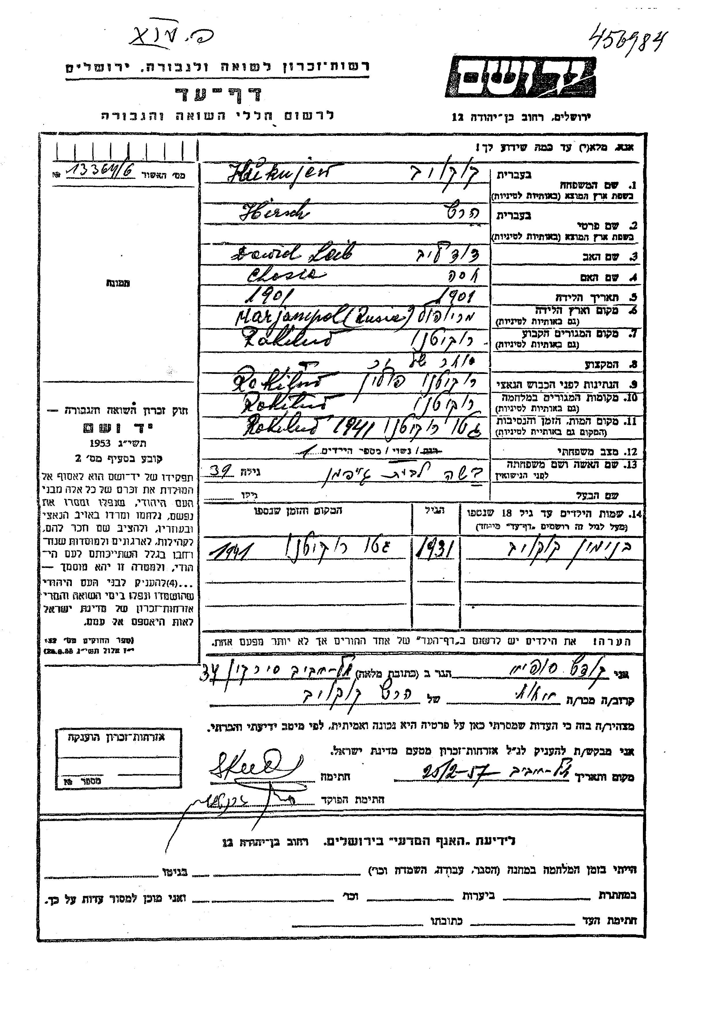 Kukujew בנימין Rokitno, פולין דף-עד