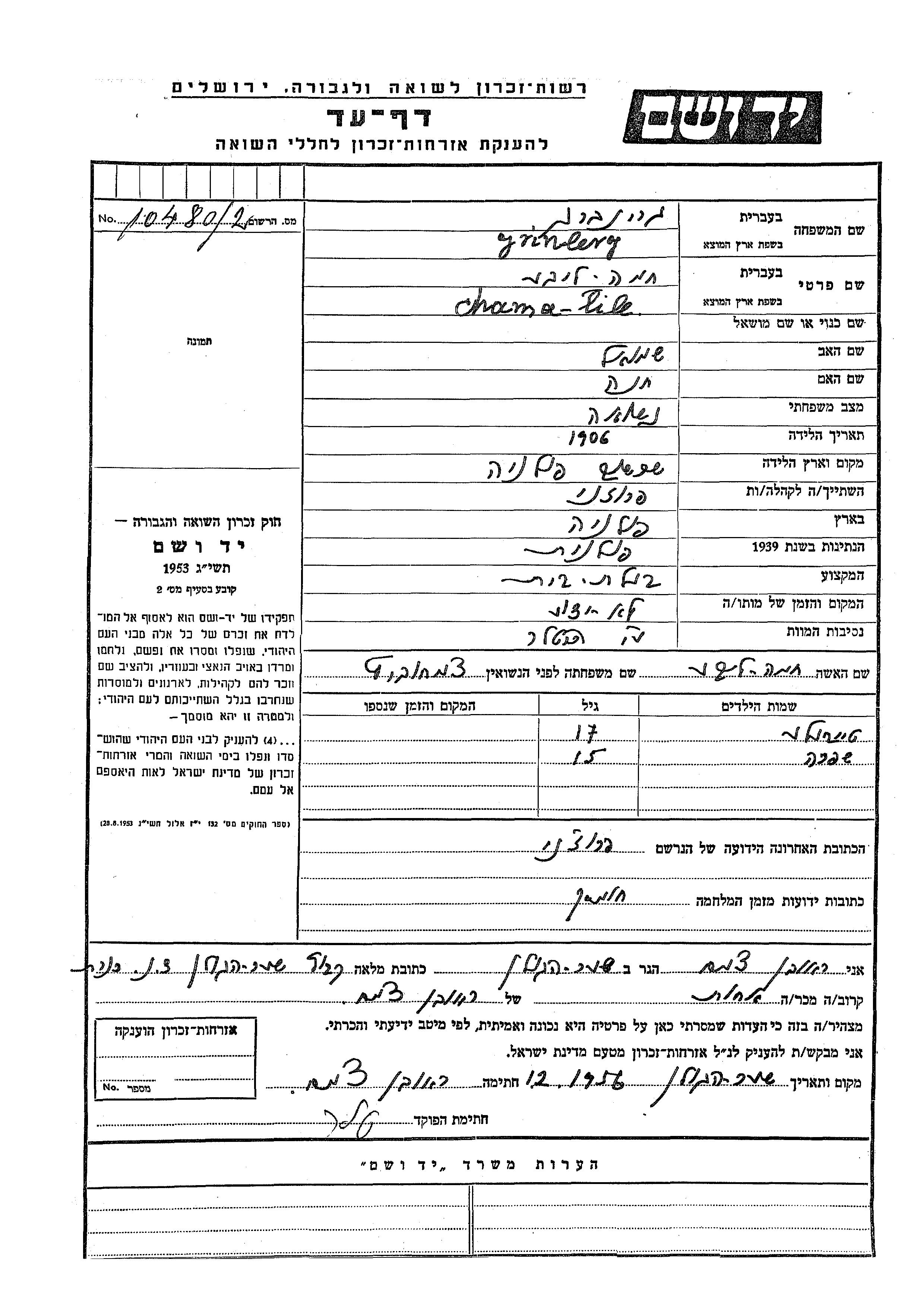 יד ושם - המפעל להנצחת השמות בדפי עד