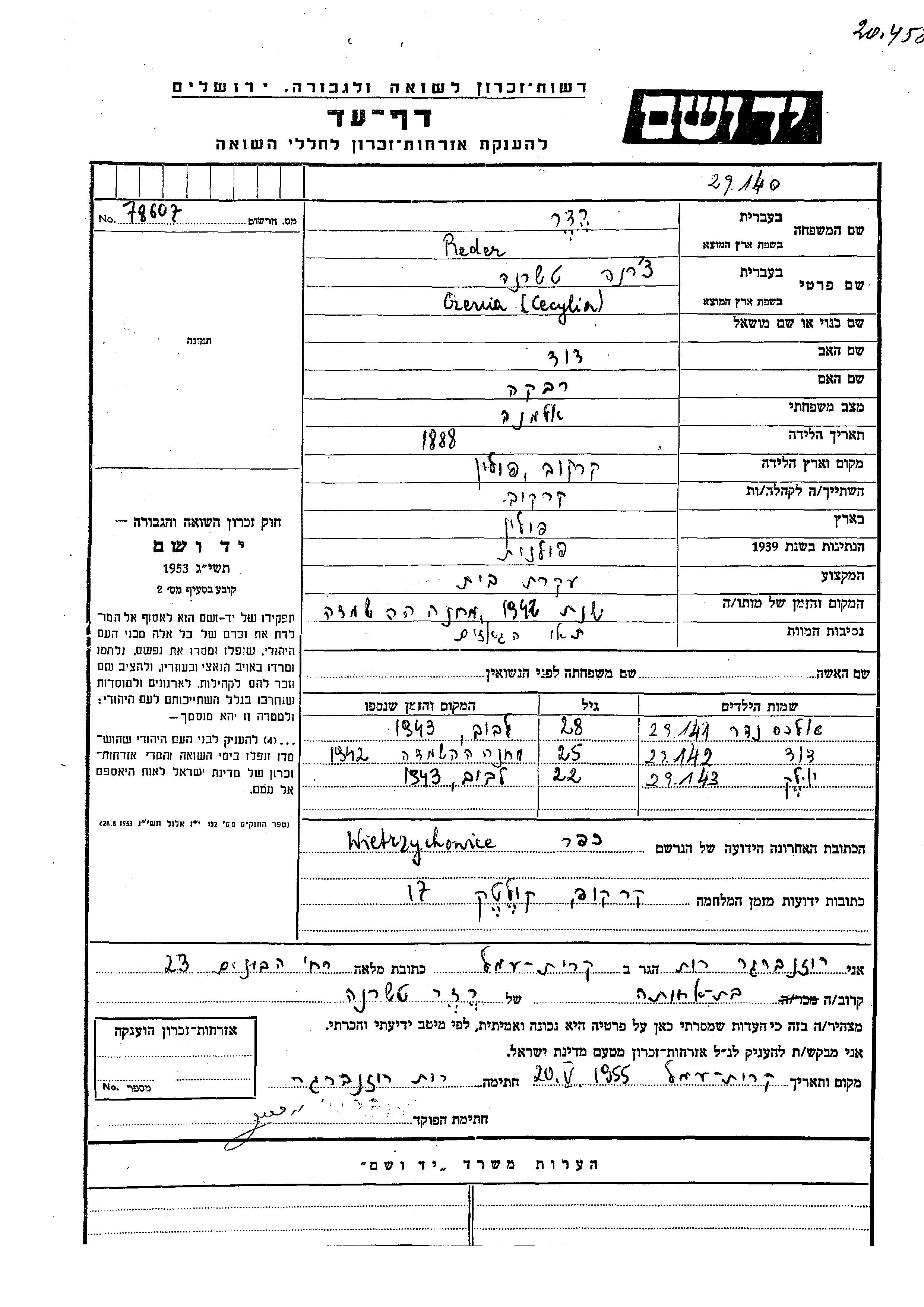 יד ושם - המפעל להנצחת השמות בדפי עד