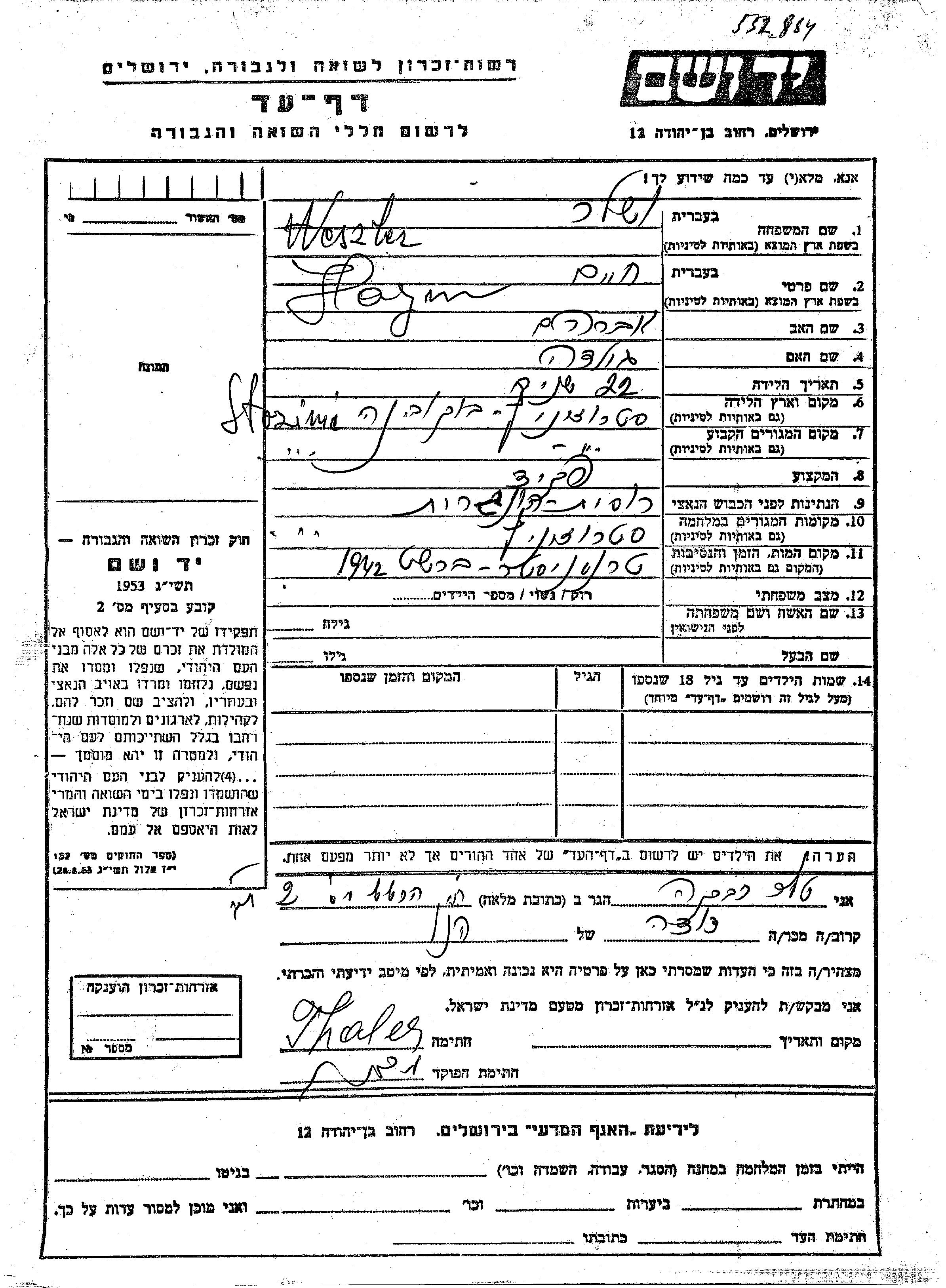 יד ושם - המפעל להנצחת השמות בדפי עד