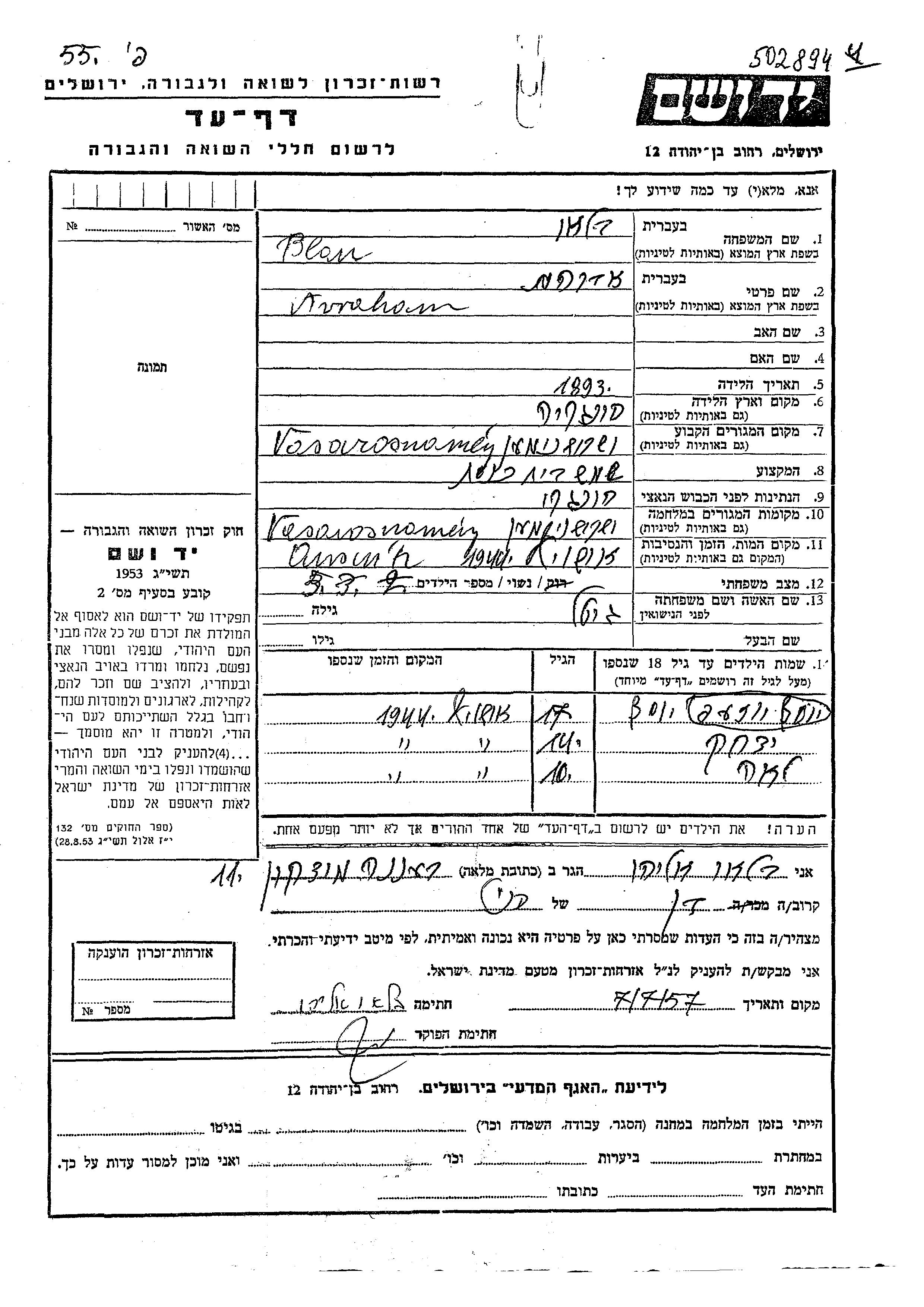 יד ושם - המפעל להנצחת השמות בדפי עד