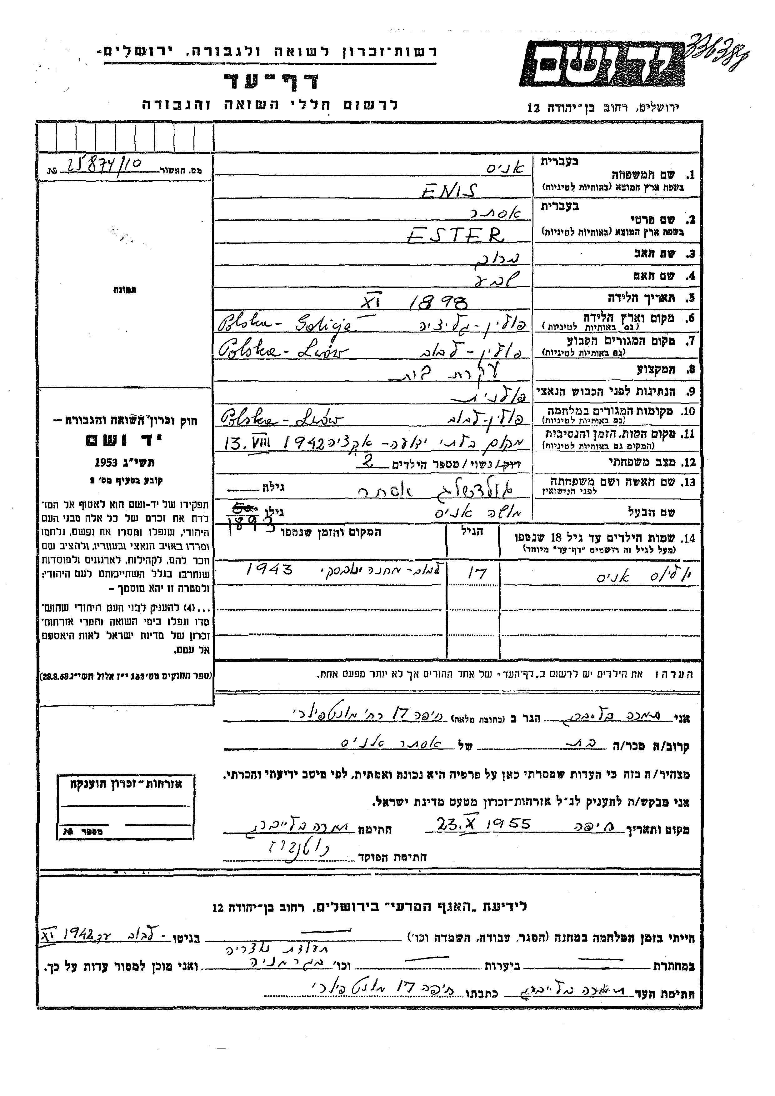 יד ושם - המפעל להנצחת השמות בדפי עד