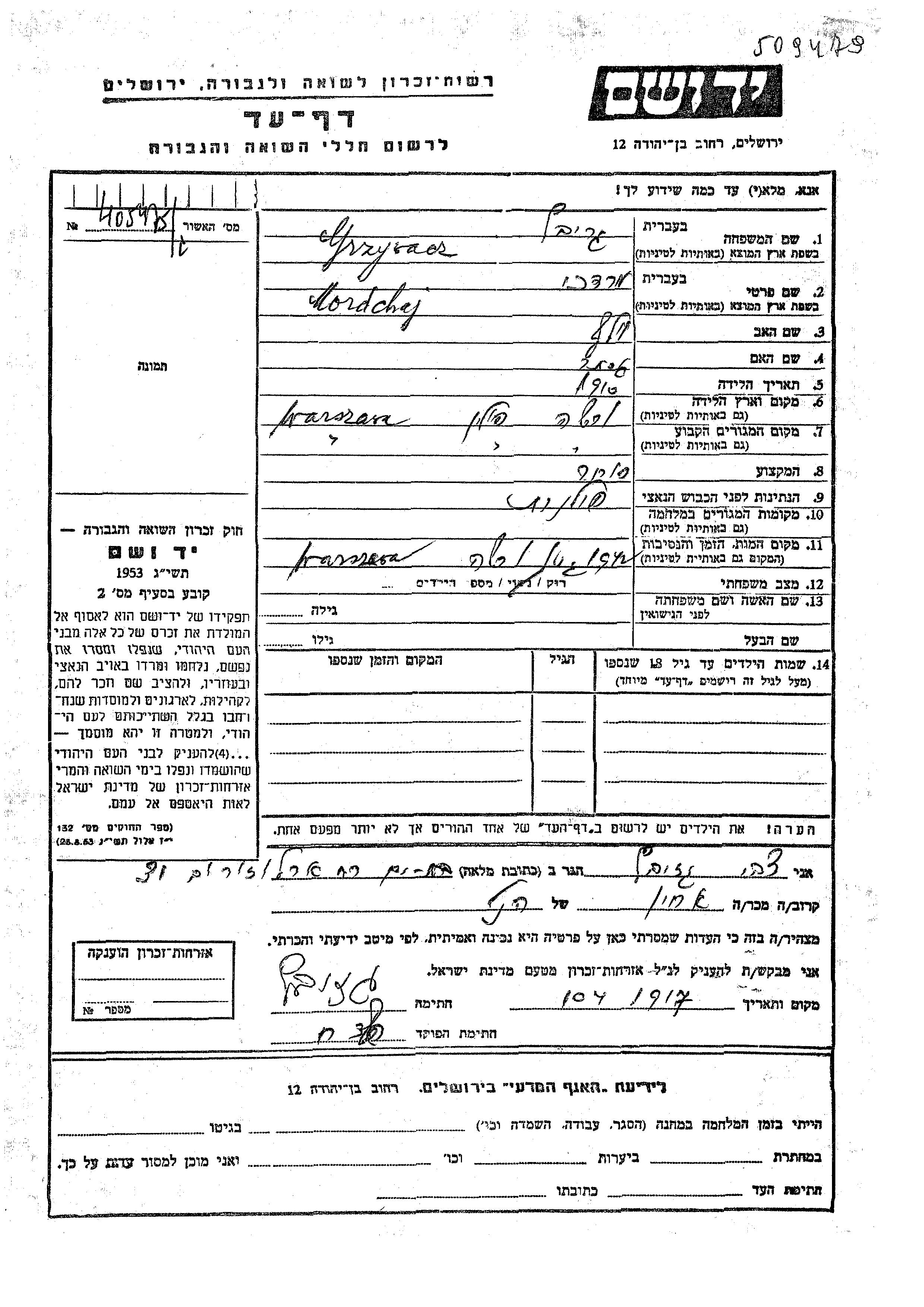 חיפוש שם מוסר דף העד. חיפוש לפי כל שם פרטי, כולל כינוי או שם חיבה