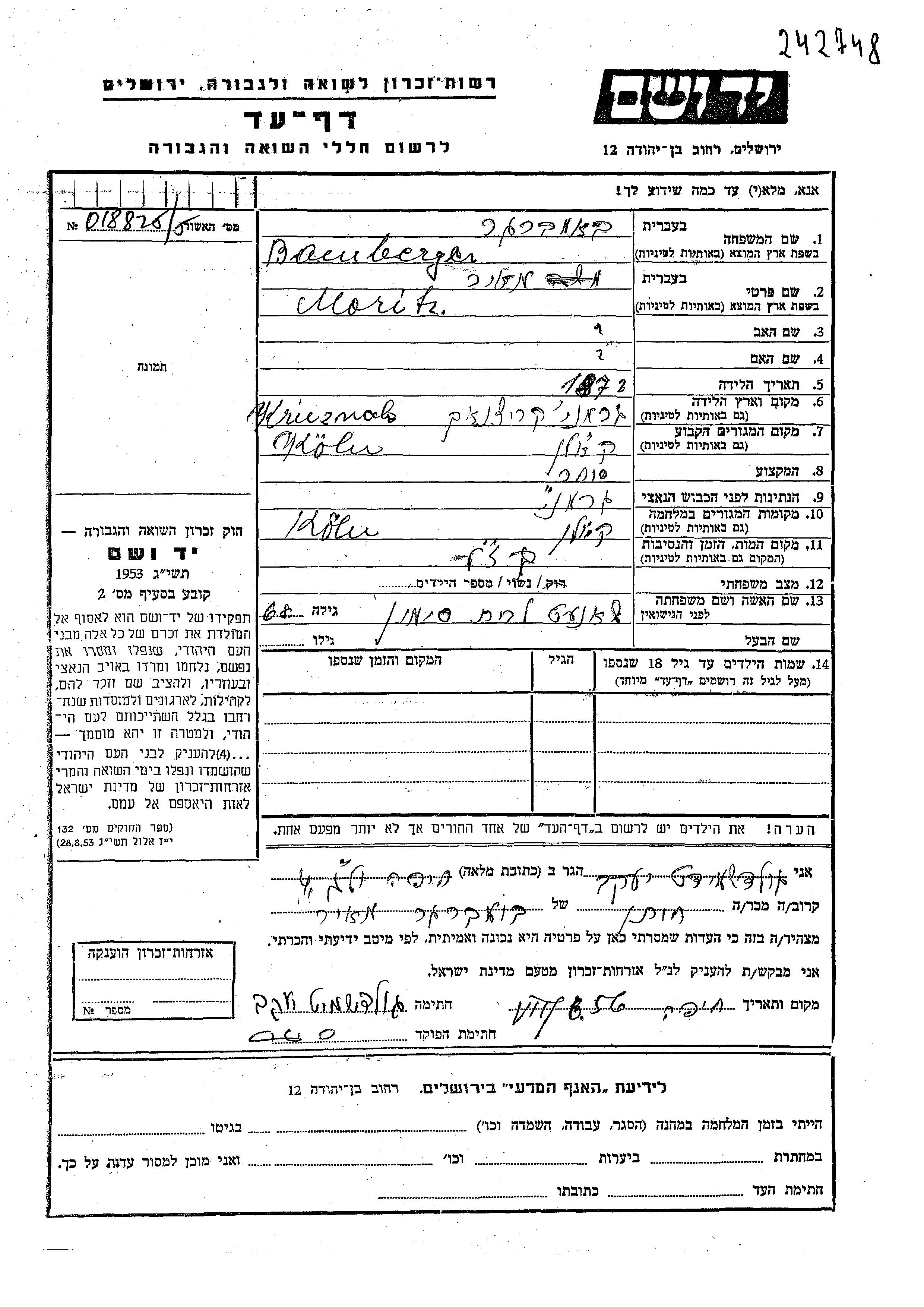 יד ושם - המפעל להנצחת השמות בדפי עד