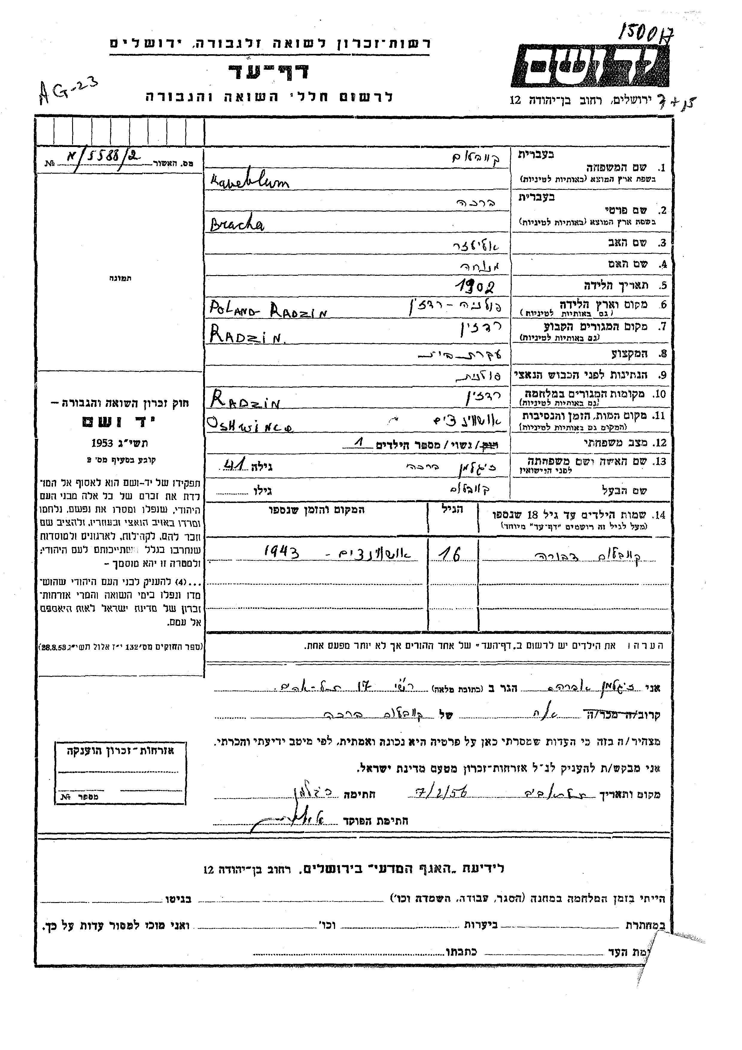 חיפוש שם מוסר דף העד. חיפוש לפי כל שם פרטי, כולל כינוי או שם חיבה