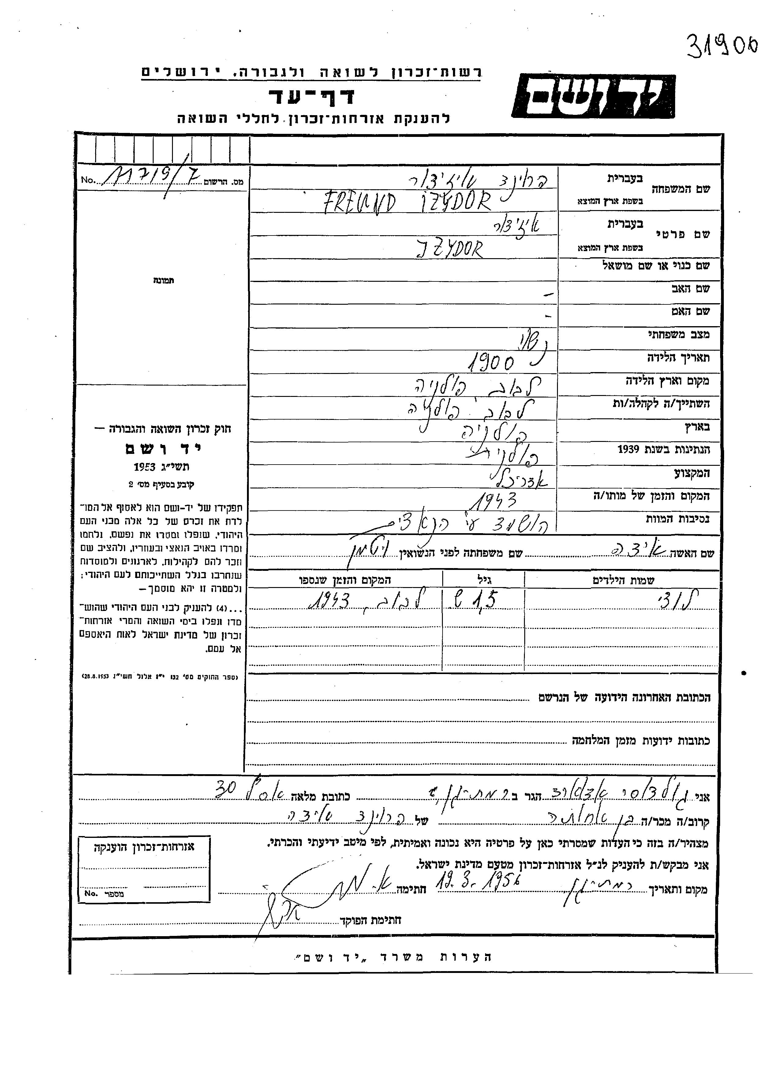 יד ושם - המפעל להנצחת השמות בדפי עד