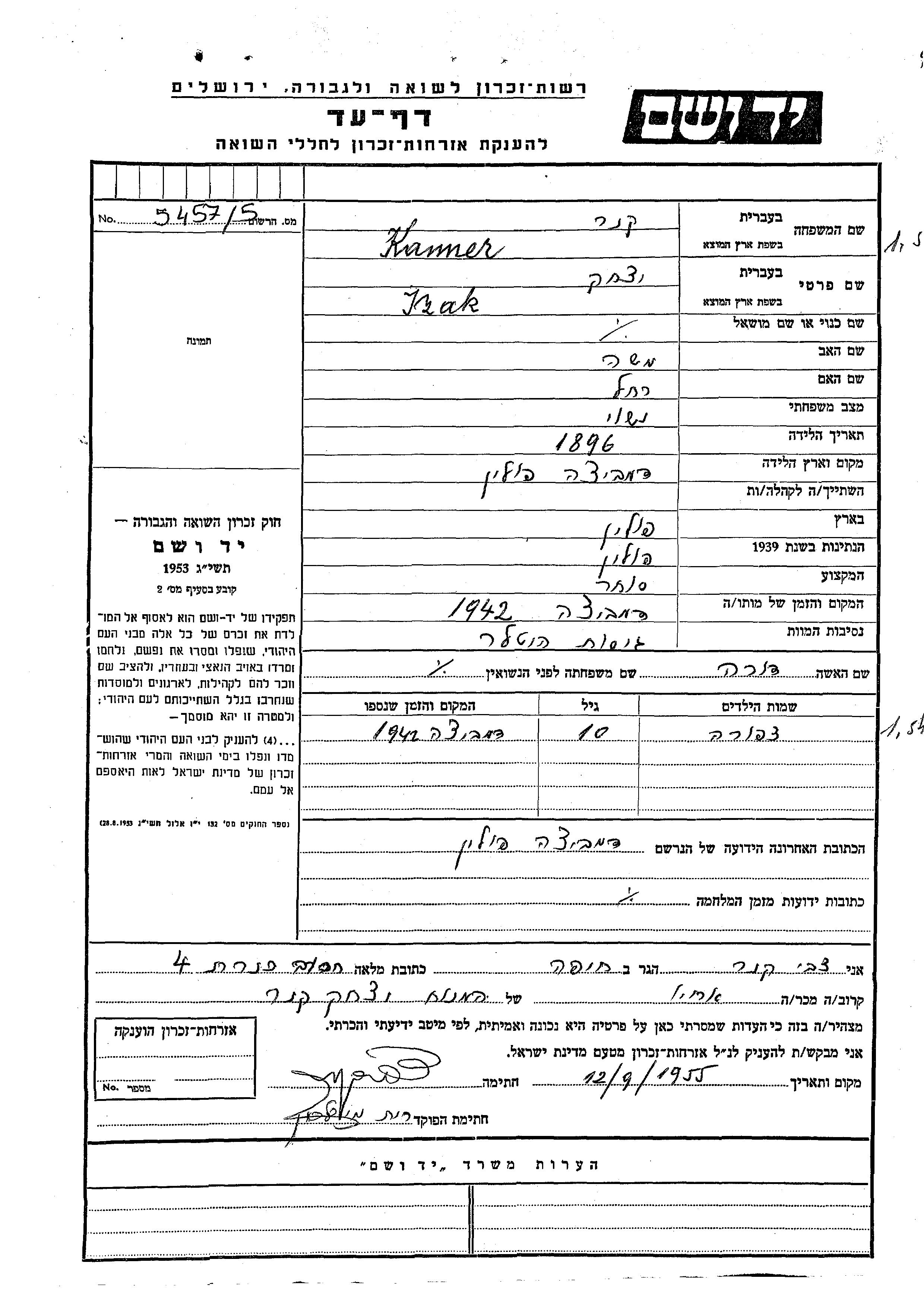 יד ושם - המפעל להנצחת השמות בדפי עד